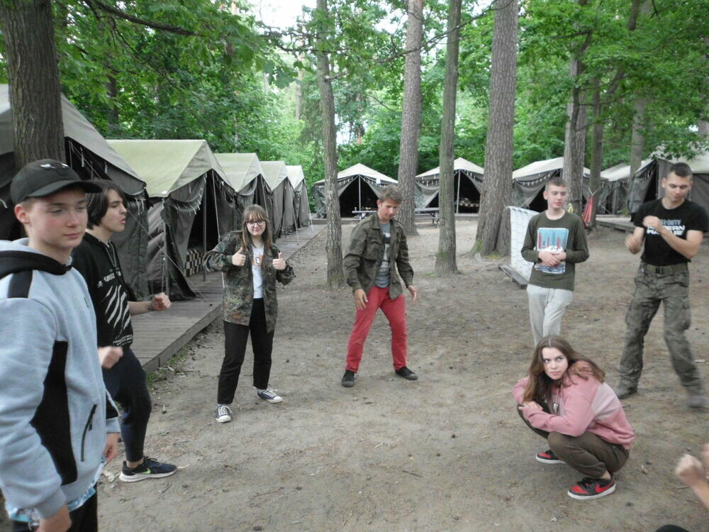Kolejny dzień kolonii rozpoczęliśmy od trzeciego już survivalu. Dowiedzieliśmy się jak pozyskać pożywienie w trudnych warunkach. Poznaliśmy skład racji żywnościowej. Dowiedzieliśmy się także jak prawidłowo się kamuflować i w czym kamuflaż może nam pomóc. Następnie udaliśmy się na plażę, gdzie kąpaliśmy się w jeziorze, a także spędzaliśmy czas grając w gry planszowe. Po pysznym obiedzie odbyło się oficjalne rozdanie kolonijnych certyfikatów, które zabierzemy ze sobą do domu. Później poszliśmy na eurobungee. Było super! Na koniec dnia odbył się apel pożegnalny, a następnie zabawa taneczna pod gołym niebem.