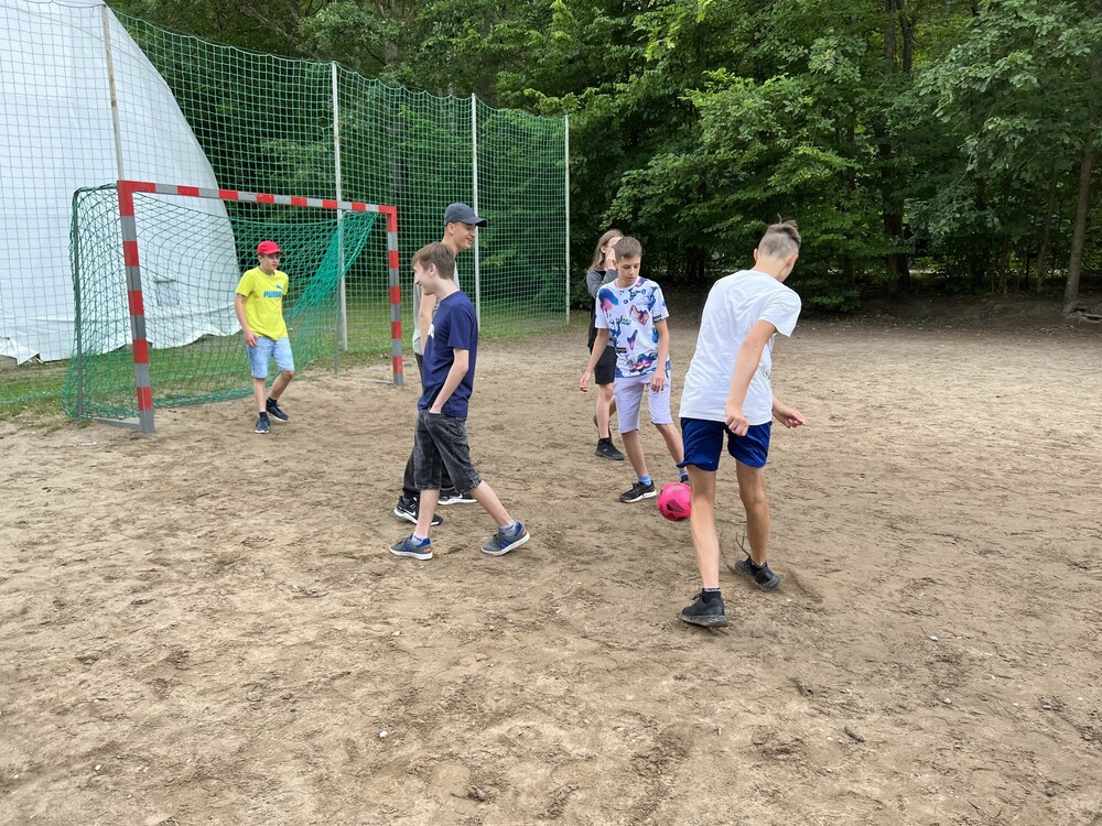 Dziś rozpoczęliśmy naszą przygodę w Ośrodku Wypoczynkowym Kulka. Zaczęliśmy od zapoznania się, następnie zapoznaliśmy się z ośrodkiem. Później graliśmy w piłkę nożną, a następnie w różne gry w kręgu, typu pif paf czy wywołuję... Wieczorem zagraliśmy w kosza i piłkę nożną.
