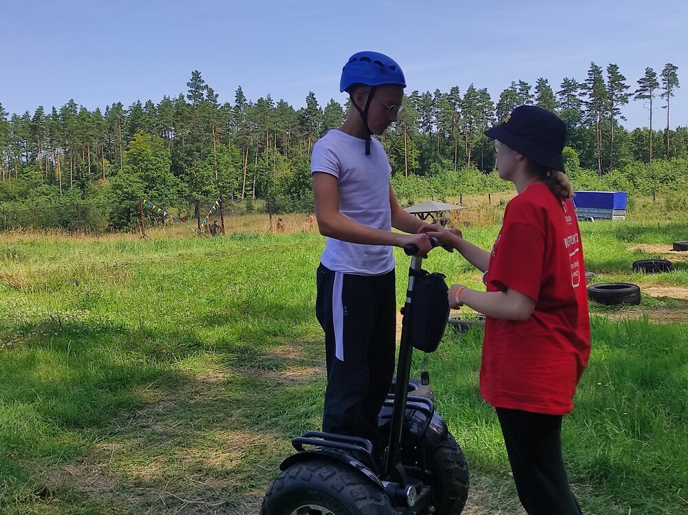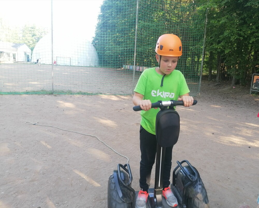 Dzisiaj mieliśmy świetne zajęcia - Akcja Integracja. Chodziliśmy w wielonartach oraz w śmiesznych trójspodniach. Korzystając z pogody bawiliśmy się wspólnie na świeżym powietrzu. Wyruszyliśmy również do lasu na grę terenową Bitwa Plemion. Wieczorem uczyliśmy się korzystać z segwaya, następnie udaliśmy się na ognisko, na którym towarzyszyły nam świetne humory.
