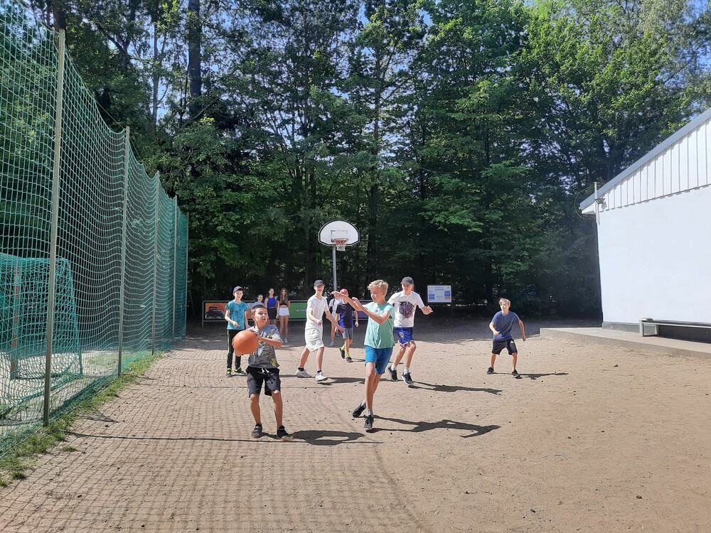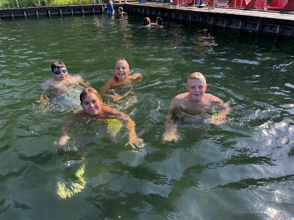 Dziś czwarty dzień kolonii, który rozpoczął się zajęciami z wychowawczynią. Graliśmy w dwa ognie, przejęcie flagi i koszykówkę. Po wspólnej zabawie udaliśmy się na plażę. Piękna pogoda aż zachęcała nas do kąpieli w jeziorze i opalania się na plaży. Po relaksie natomiast rozpoczęła się gra Tajna Misja. Musieliśmy odnaleźć kawałki mapy za pomocą kompasu, dzięki niej dotrzeć do bomby i uratować kolonię. Po obiedzie graliśmy w piłkę nożną i gry integracyjne, a następnie braliśmy udział w grze terenowej Błędny Azymut, w której nauczyliśmy się używać GPS-u. Wieczorem po kolacji udaliśmy się do lasu na grę terenową Mafia. To był dzień pełen wrażeń.