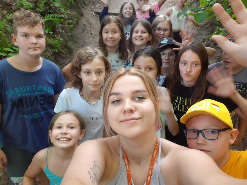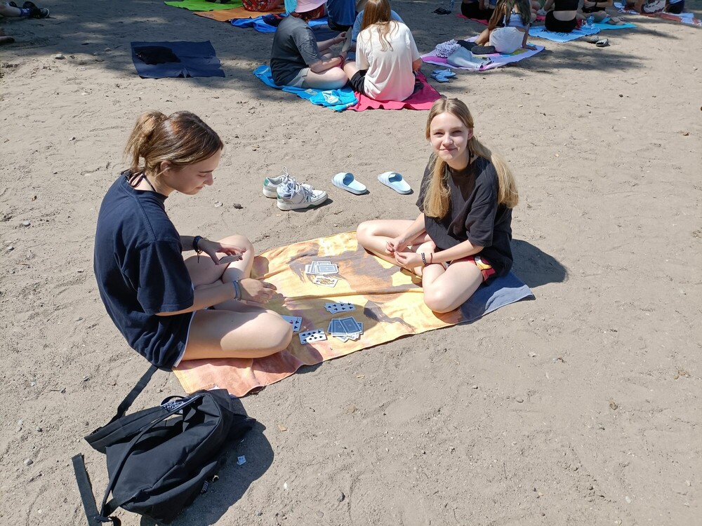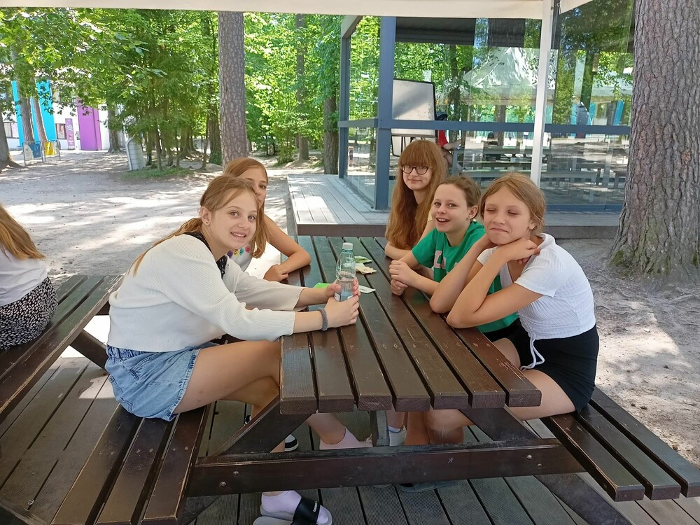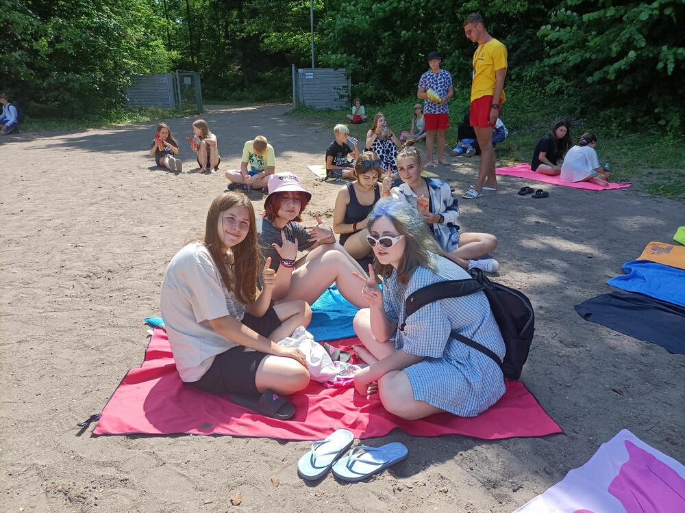 Dzień zaczęliśmy od poligonu paintballowego, na którym zostaliśmy najlepszą drużyną. Pokonanie innych grup dało nam satysfakcję! Po tej rywalizacji zasłużyliśmy na chwilowy odpoczynek. Później poszliśmy pośpiewać karaoke do Cool Baru. Następnie spędzaliśmy czas nad jeziorem – kąpaliśmy się, graliśmy w piłkę siatkową i puszczaliśmy kaczki. Na koniec dnia poszliśmy do lasu rozegrać grę terenową, w czasie której świetliki rozmieszczone na drzewach wskazywały nam drogę. Jutrzejszy dzień też zapowiada wiele atrakcji!