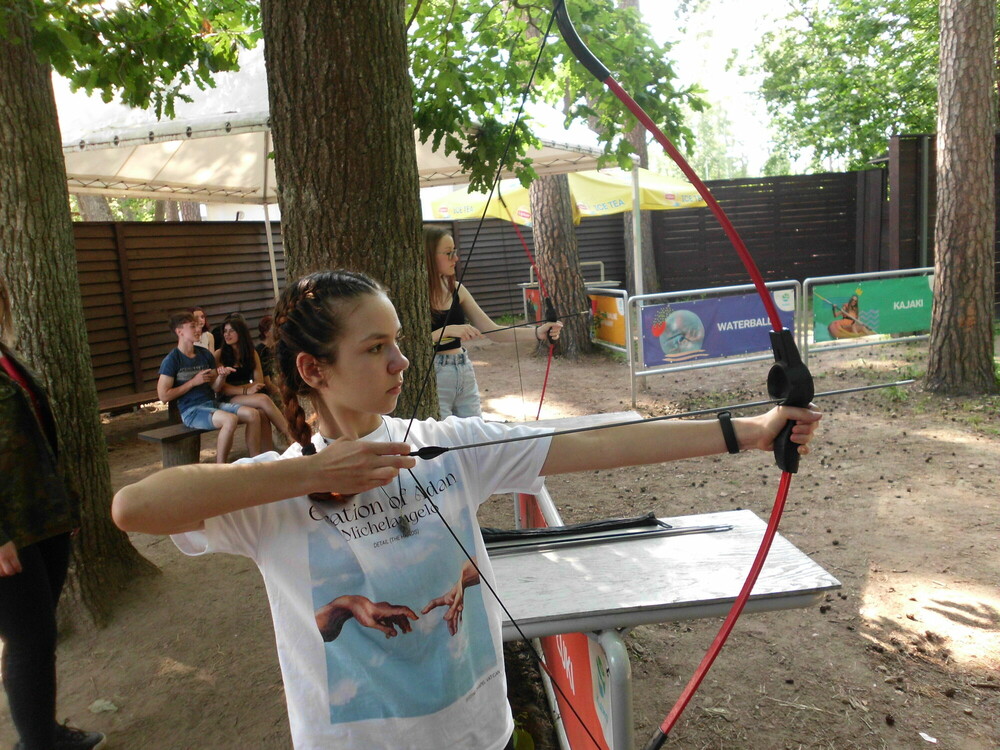 Środę zaczęliśmy od zdrowej sportowej rywalizacji w wyścigu balonów, następnie rozgrywką w bystre oko, a blok zajęć zakończyliśmy grą ludzie do ludzi. Później szlifowaliśmy swoje umiejętności łucznicze. Odbył się nawet mini turniej w strzelaniu z łuków, który wygrała drużyna żabek. Później zagraliśmy w grę terenową Bitwa Plemion. Podzieleni na dwie grupy musieliśmy zdobyć jak najwięcej wstążek koloru przeciwnej drużyny. Następnie spędziliśmy wspólnie zakręcony czas na żyroskopie, czyli utrzymywaliśmy orientację przestrzenną w tym symulatorze lotów kosmicznych. Fantastyczne doświadczenie! Przed kolacją udaliśmy się na wyprawę smocza łodzią po jeziorze Łęsk. Towarzyszyła nam przy tym fenomenalna pogoda. Dzień zakończyliśmy grami i zabawami przy ognisku i pieczeniem kiełbasek. To był dzień pełen śmiechu, zabawy i pięknej pogody.