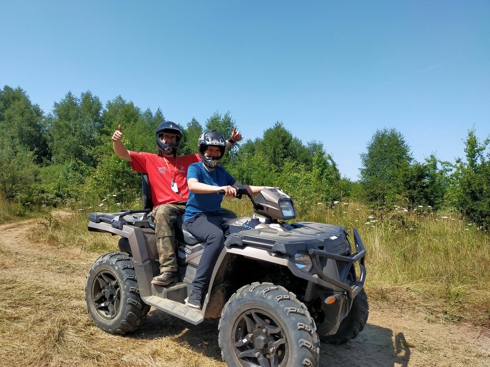 Aktywną środę rozpoczęliśmy blokami zajęć na poligonie. Pokonaliśmy trudny tor na segwayach oraz quadach, odbył się off road pojazdem ranger oraz stoczyliśmy się specjalnym torem w środku wielkiej dmuchanej kuli - zorby. Po obiedzie wzięliśmy udział w realnej zabawie w wirtualnym świecie dzięki wirtualnym dywanom. Komputerowe emocje i fizyczna aktywność na jednych zajęciach! Dzień zakończyliśmy wieczorną grą terenową Mafia.