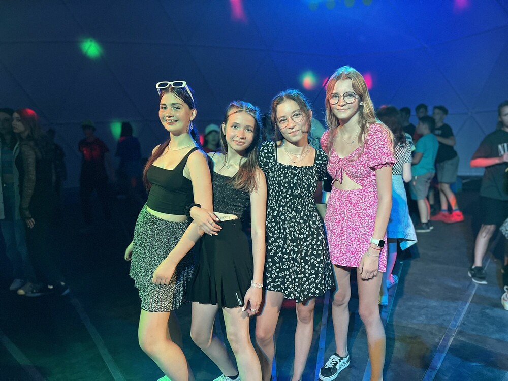 Dzień czwarty był pełen atrakcji! Rozpoczęłyśmy go od wyprawy do lasu, aby poznać tajniki sztuki survivalu. Dowiedziałyśmy się, jak przetrwać w lesie. Następnie rozegrałyśmy mini turniej w siatkówkę, a kolejnym punktem były gry świata, podczas których zapoznałyśmy się z grami z różnych kontynentów. Następnie udałyśmy się nad jezioro, gdzie szkoliliśmy swoje techniki pływackie pod okiem ratownika. Przed kolacją uczyłyśmy się gry na bum bum rurkach, dzięki którym wygrywałyśmy różne piosenki. Dzień zakończyłyśmy Wieczorem Gwiazdorskim, podczas którego robiłyśmy sobie nawzajem makijaże oraz dobierałyśmy stylizację.