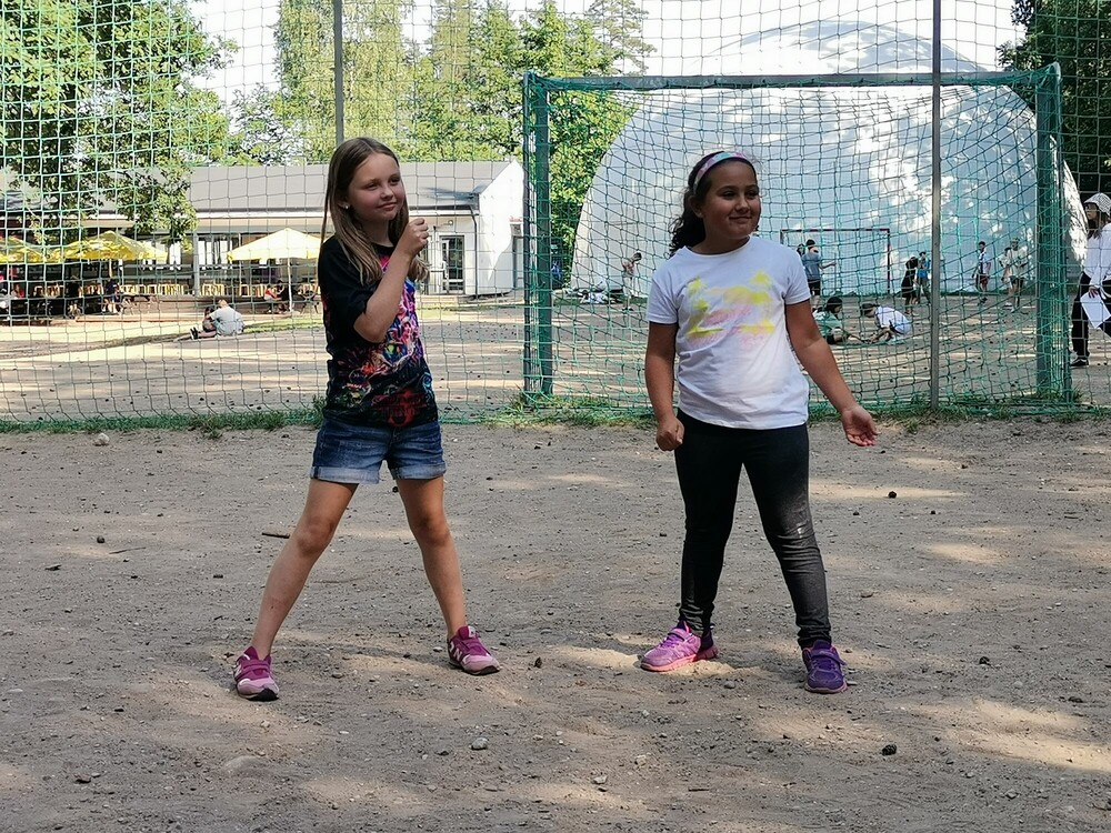To już czwarty dzień pełen przygód. Rano pograłyśmy w przeróżne gry integracyjne i pląsy, takie jak mój kask czy krokodyl. Słonko nas nie opuszczało, więc po zabawie poszłyśmy na plażę. Poza tym sprawdzałyśmy swoją celność podczas zajęć na strzelnicy paintballowej oraz Archery Soft. Emocji nie brakowało też wieczorem, gdy stoczyłyśmy walki gladiatorów. Jesteśmy szczęśliwe, że możemy spędzać czas w kulkowym ośrodku wśród lasu.