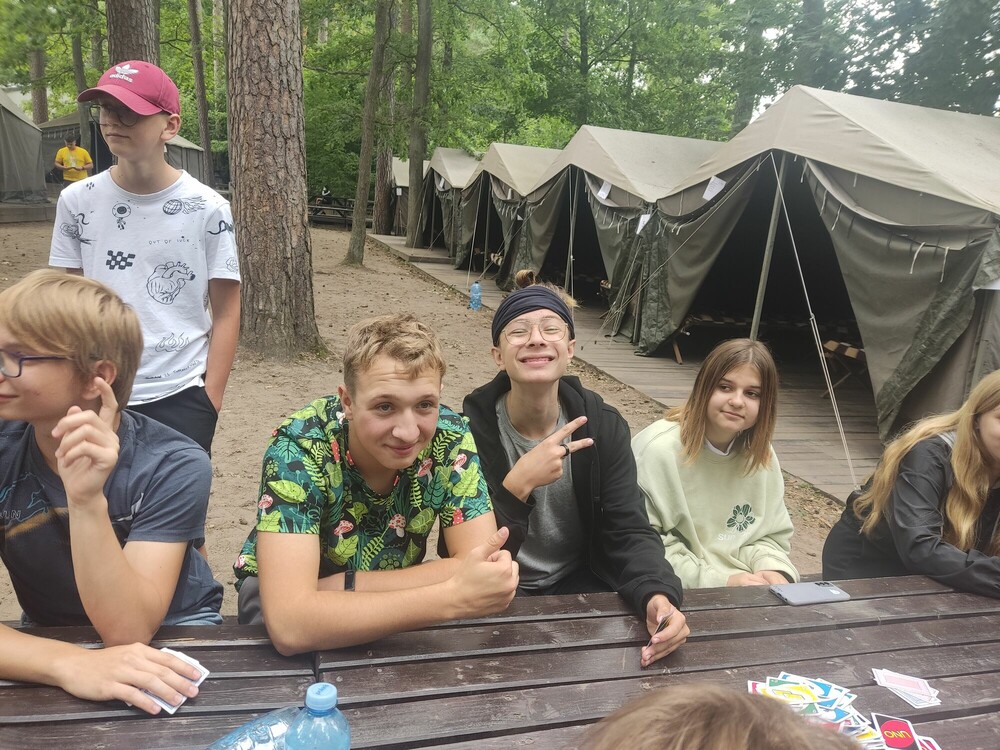Witamy na Kulce, gdzie zabawa trwa na okrągło! Słońce chowało się chwilami za chmurami, ale atmosfera już jest u nas pogodna dzięki pierwszym grom w siatkówkę, karty i dzięki apelowi ze wszystkimi uczestnikami ośrodka. Na koniec dnia uroczyście przydzielono nam mundury, które przeżyją tę wielką przygodę razem z nami.