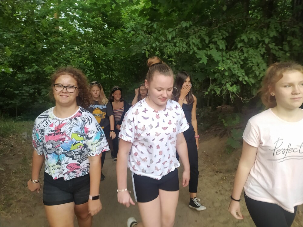 Dzień był niezwykły i pełen energii. Wszystkie razem spotkałyśmy się na naszym obozie przyjaźni. Poprzez gry i zabawy integracyjne poznałyśmy siebie i swoje zainteresowania. Wieczorem wybrałyśmy się na Polanę Przyjaźni, czyli na ognisko z przekąskami. Nie możemy doczekać się jutra, aby ruszyć pełną parą zabawę!