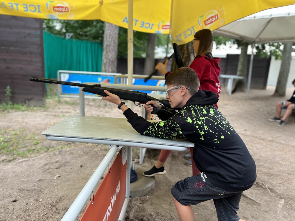 Ten dzień na naszej kolonii rozpoczęliśmy od pysznego śniadania. Następnie zaczęliśmy się pakować i uzupełniliśmy ankiety. Potem mieliśmy wirtualne dywany, czyli realną zabawę w wirtualnym świecie. Następnie poznaliśmy podstawowe układy taneczne tańców nowoczesnych. Po obiedzie odbyły się walki gladiatorów. Zostaliśmy wyposażeni w gumowe lance i w kask ochronny, by rywalizować na specjalnej macie. Na kolejnych zajęciach nauczyliśmy się posługiwać wiatrówką sprężynową oraz poznaliśmy podstawowe postawy strzeleckie. Po kolacji odbył się apel końcowy, a potem zabawa pod gwiazdami. I tak oto kończymy naszą przygodę kulkową.