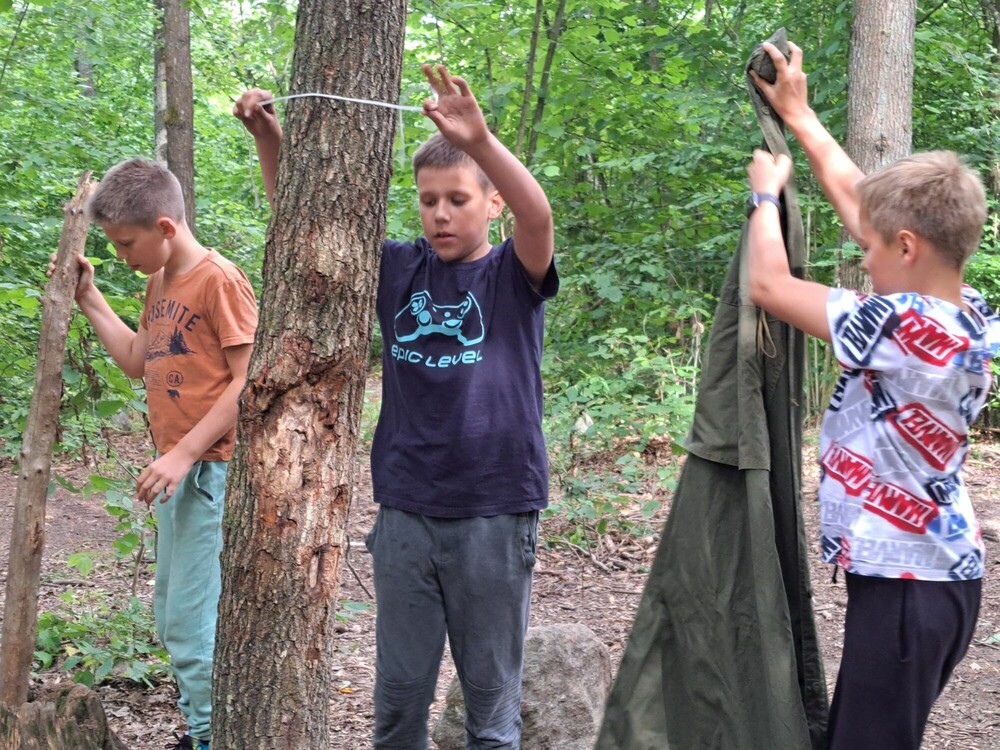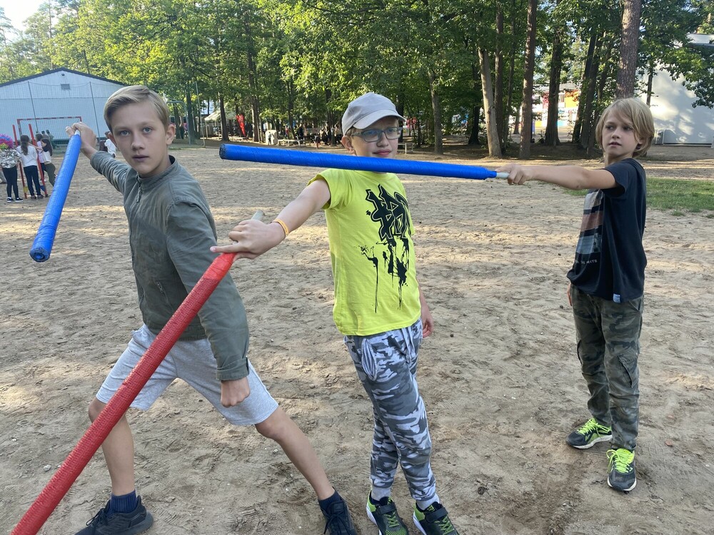 Ostatni dzień naszych przygód. Aby jeszcze wspólnie nacieszyć się czasem wakacji, bawiliśmy się w konstruktorów i projektowaliśmy wielkie budowle. Potem był czas na wypełnianie ankiet, rozmowy z wychowawcami oraz na ostatnie mega gry. Nie zabrakło również ciekawych zajęć z instruktorami. Pan Maksymilian przeprowadził nam naukę władania mieczem, a Pan Kornel pokazał nam podstawowe techniki survivalu. Na koniec mieliśmy czas na spakowanie się i apel końcowy.