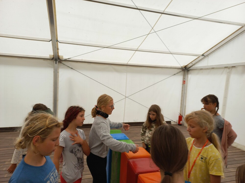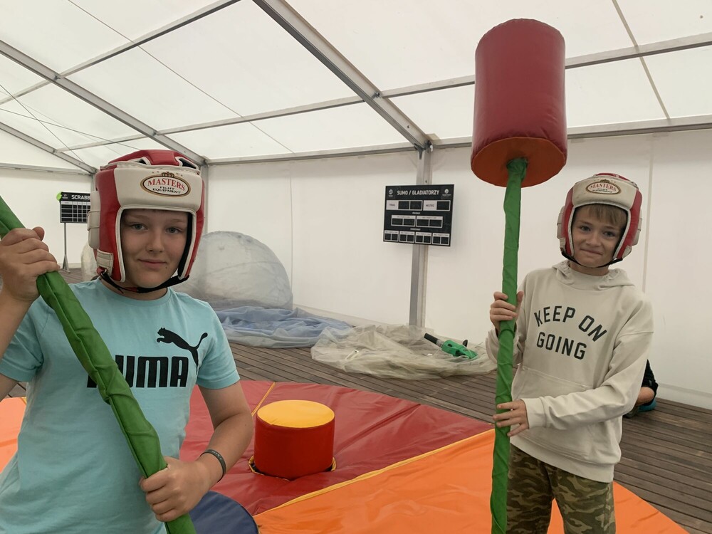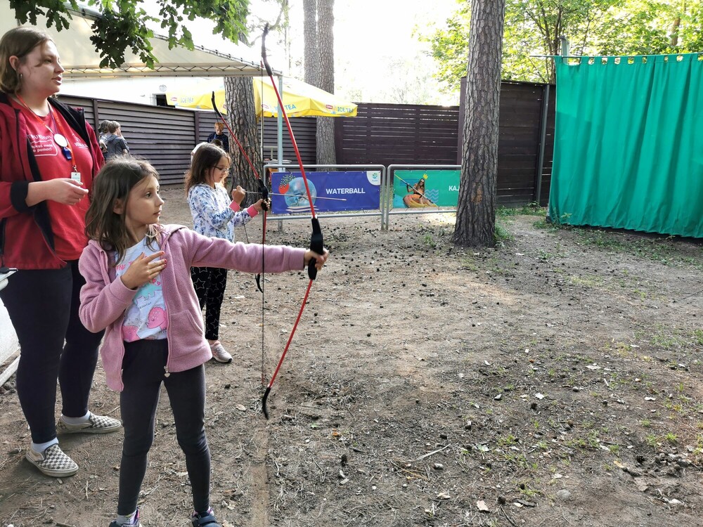 Dzień zaczęliśmy od rozgrzewki, zabaw i wspólnej gry. Później zmieniliśmy się w prawdziwych zawodników sumo, zmagając się ze sobą w walkach na macie. Następnie czekał nas prawdziwy trening łuczniczy, podczas którego sprawdziliśmy swoje umiejętności, celnie trafiając w zawodników z przeciwnej drużyny. Po chwili na spakowanie się przeżyliśmy przygodę ściągając się na prawdziwych szczudłach oraz dziwnym rowerze. Wieczorem uczestniczyliśmy w apelu końcowym, podczas którego podziękowaliśmy kadrze za wspólnie spędzony czas.
