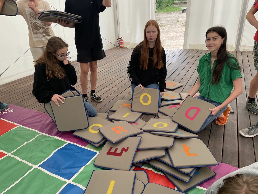 Dzień rozpoczęliśmy od gier i zabaw integracyjnych. Nie zabrakło również wspólnych tańców. Znaleźliśmy też czas na dokończenie naszej flagi. Rozrywki dostarczyły nam mega gry. Zagraliśmy w wersje gier XXL takich jak jenga, twister, scrabble i bierki. Po obiedzie mieliśmy okazję strzelać do siebie z łuków specjalnie zakończonymi strzałami. Świetnie się przy tym bawiliśmy. Zrobiliśmy dziś również pamiątkowe rysunki. Każdy z nas narysował coś wszystkim członkom drużyny na kartce. Wieczorem odbył się apel kończący nasz pobyt w ośrodku, a po nim nasza dyskoteka.