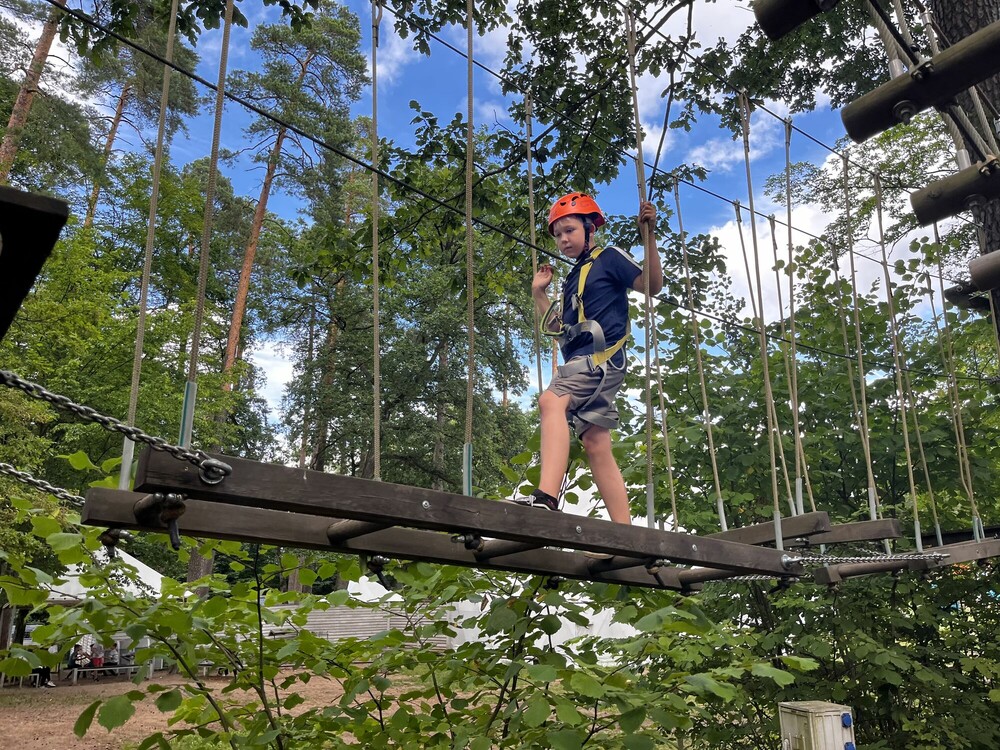 Ten dzień naszego obozu był wypełniony atrakcjami. Na początku starliśmy się w pojedynkach, niczym prawdziwi gladiatorzy! Następnie przeszliśmy park linowy na dwóch poziomach trudności, to było naprawdę ekscytujące. Bawiliśmy się świetnie na eurobungee, gdy poczuliśmy się jak w chmurach! Śpiewaliśmy również do ulubionych utworów na karaoke. Wieczorem odbył się pożegnalny apel wraz z wielką imprezą na zakończenie. To była niezapomniana przygoda, z pewnością tu wrócimy za rok!