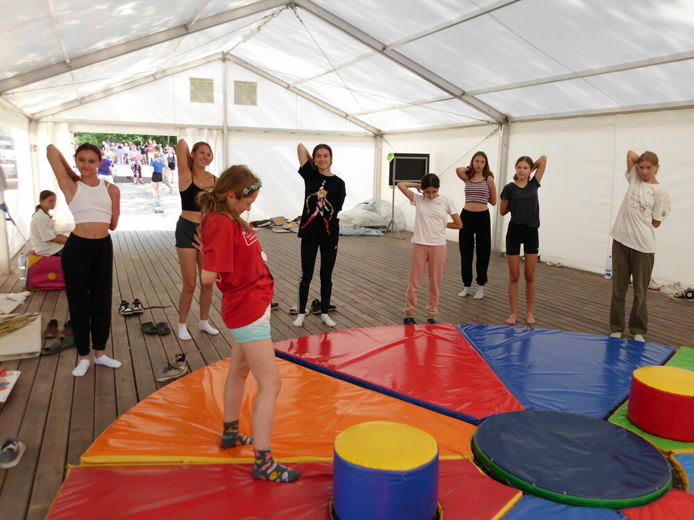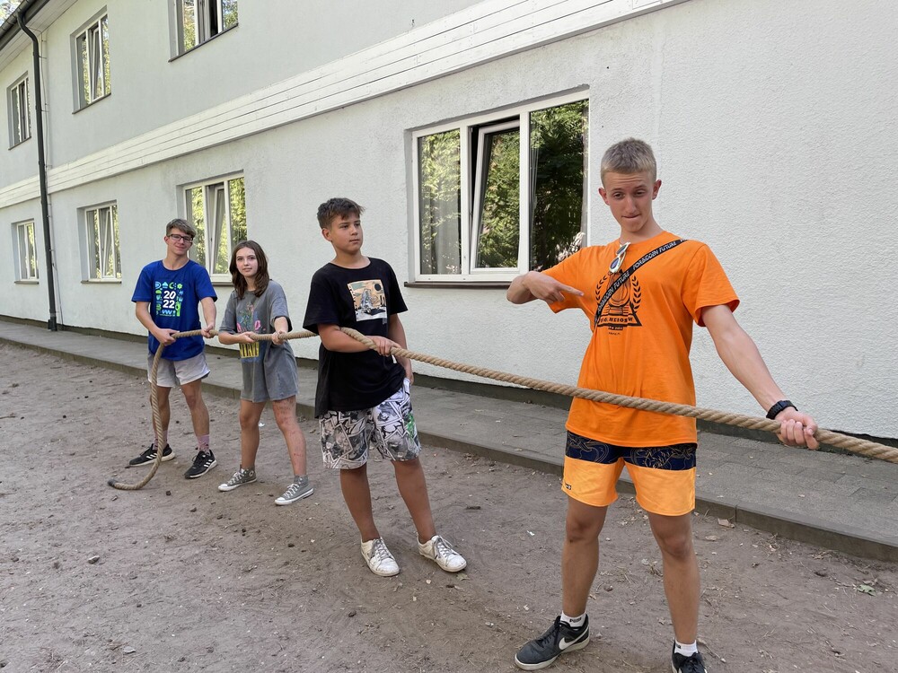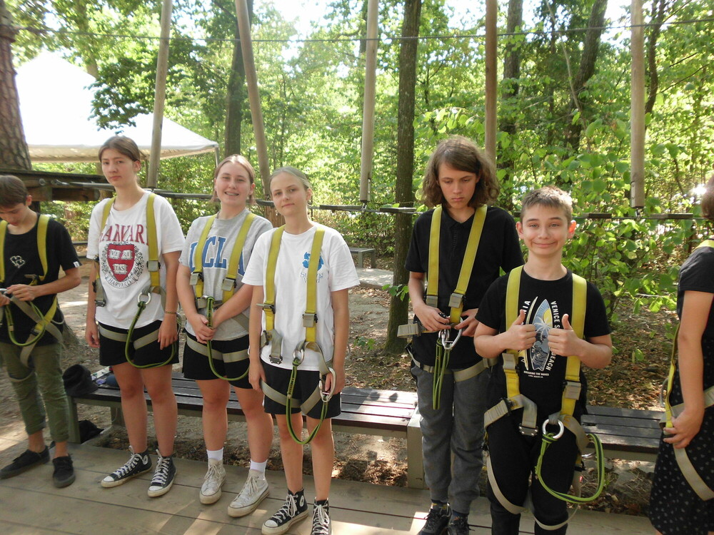 Po śniadaniu wzięliśmy udział w turnieju wiedzy, w czasie którego udzielałyśmy odpowiedzi na pytania z różnych dziedzin. Wykazaliśmy się również refleksem podczas licytacji. Następnie bawiliśmy się w cyrk, chodziliśmy na szczudłach oraz jeździliśmy na dziwnym rowerze. Po drugim śniadaniu odbył się mecz waterpolo na kąpielisku. Potem zrobiliśmy pamiątkowe grupowe zdjęcie. Część z nas wybrała się na laserowy paintball, aby wziąć udział w zajęciach fakultatywnych. Nie możemy doczekać się jeszcze jednego dnia pełnego atrakcji.
