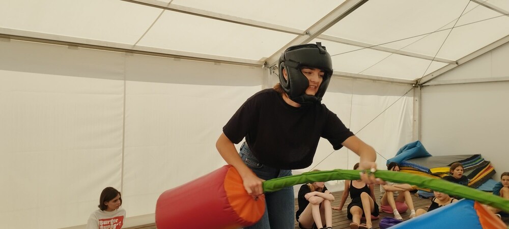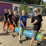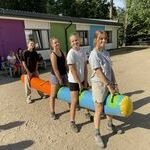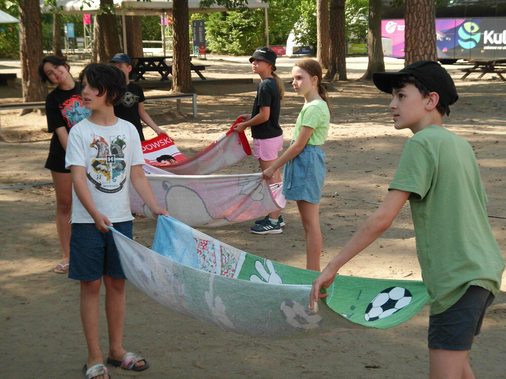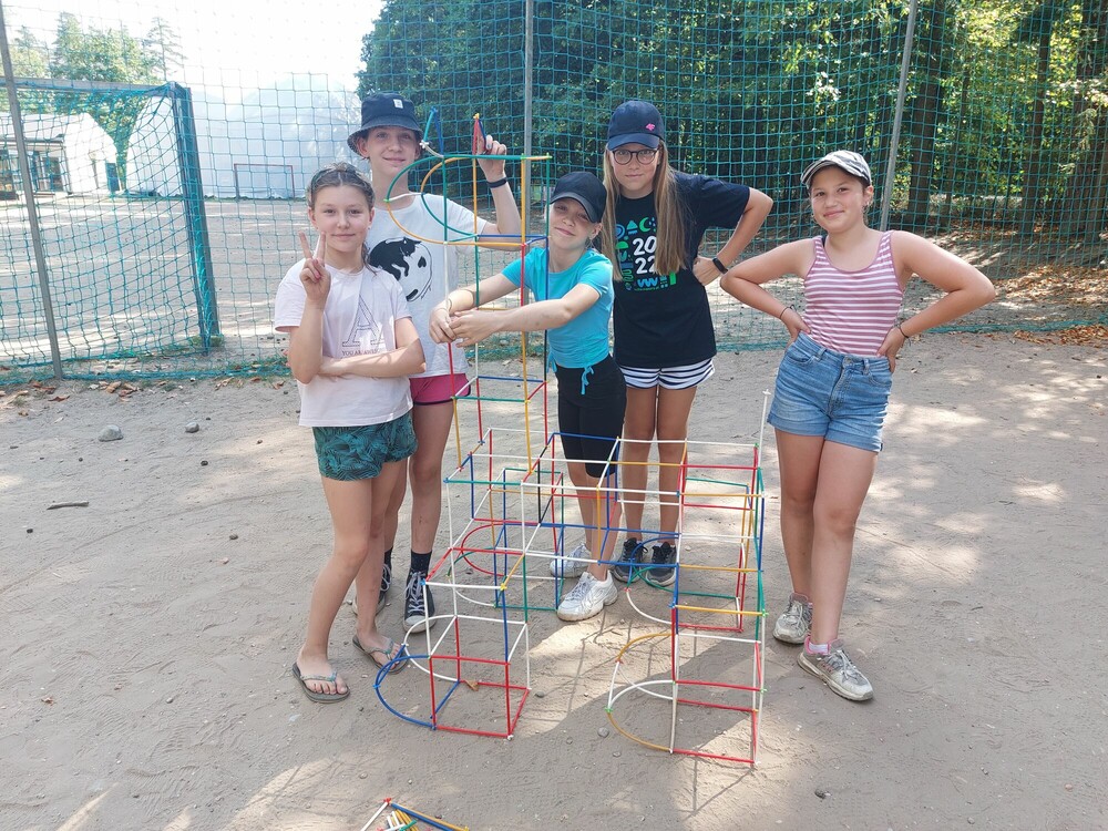Dzień rozpoczęliśmy od nauki jazdy segwayem po specjalnie przygotowanym torze przeszkód. Następnie korzystając z pięknej, słonecznej pogody wybraliśmy się nad jezioro Łęsk. Wcieliliśmy się dziś w rolę konstruktorów i za pomocą specjalnych elementów zwanych bambonadą tworzyliśmy przeróżne budowle. Zagraliśmy dziś w baloniadę, która dostarczyła nam wiele świetnej zabawy i odrobinę ochłody. Odbył się również mecz piłki siatkowej. Wieczorem wyposażeni w kaski ochronne i gumowe lance na specjalnej macie stoczyliśmy walki gladiatorów. Dzień był bardzo aktywny oraz pełen uśmiechu.