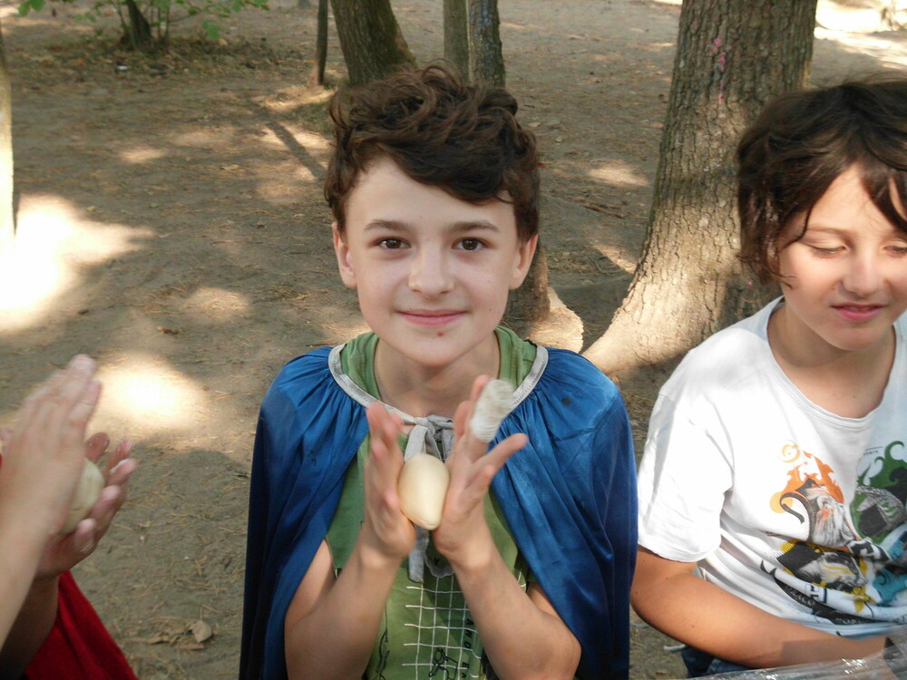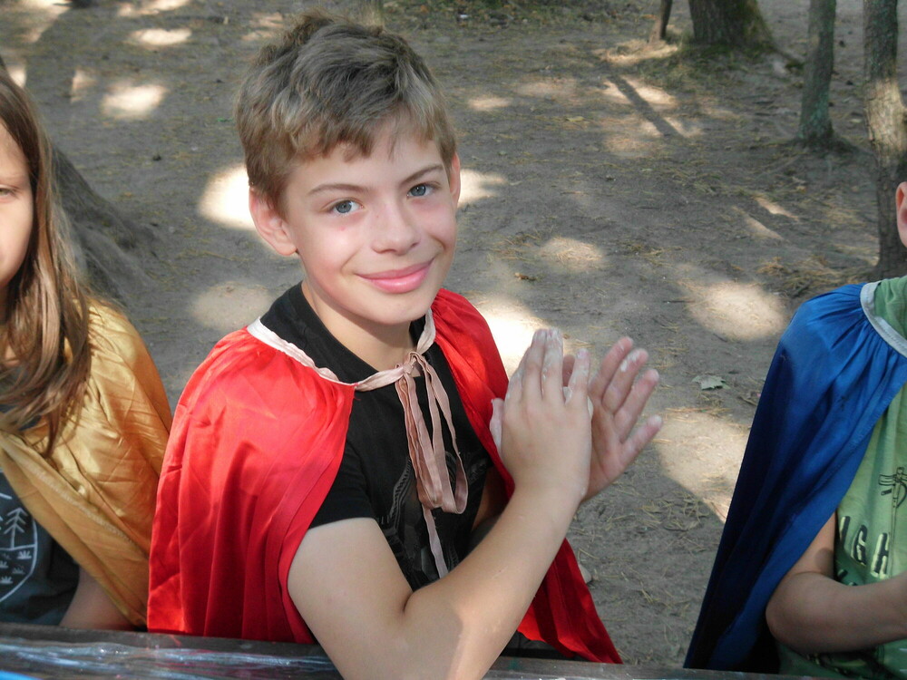 Dzień rozpoczęliśmy od przyjęcia urodzinowego. Nasza koleżanka skończyła dzisiaj 13 lat i z tej okazji postanowiliśmy wspólnie świętować. Następnie udaliśmy się na zajęcia z survivalu, na których uczyliśmy się, jak wykonać naturalny filtr do wody oraz jakie mamy rodzaje ognisk i jak rozpalić je za pomocą krzesiwa. Następnie wspólnie zagraliśmy w różne gry integracyjne. Po obiedzie odbyliśmy szkolenie z posługiwania się mieczem. Później odegraliśmy przygotowane przez nas scenki z użyciem mieczy, a na koniec walczyliśmy między sobą. Odbyliśmy z ratownikiem szkolenie z udzielania pierwszej pomocy. Przypomnieliśmy sobie jej podstawy oraz wspólnie je ćwiczyliśmy. Wieczór spędziliśmy wspólnie, ponieważ zostały nam już ostatnie godziny obozu. Przygotowujemy się na jutrzejsze, finalne atrakcje.