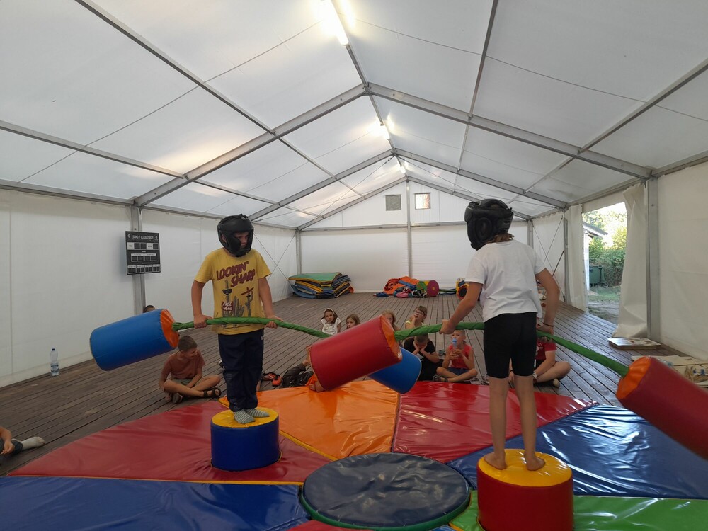 Dziś rozegraliśmy bitwę prawdziwych tytanów. Walki gladiatorów wyłoniły najsilniejszego i najsprytniejszego wśród nas. Skorzystaliśmy z pięknej pogody i wskoczyliśmy nie jeden raz do orzeźwiającej wody w jeziorze Łęsk. Zakręciliśmy się na żyroskopie i sprawdzaliśmy się w kosmicznym treningu. Na koniec dnia odbyły się przygotowania do Nocnego Desantu, jak i sam desant, na którym wykorzystaliśmy wszystkie umiejętności zdobyte w czasie dotychczasowych zajęć na kolonii.