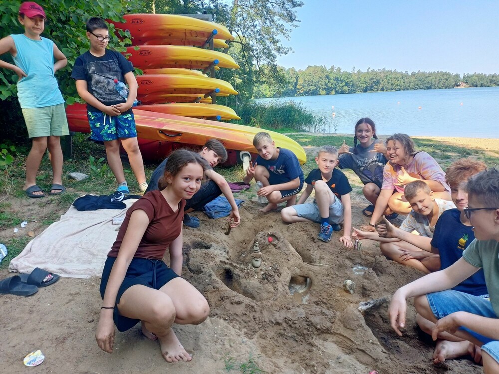 Kolejny dzień pełen atrakcji za nami. Na samym początku dnia wzięliśmy udział w leśnych podchodach. Przeżyliśmy tam niesamowitą, leśną przygodę. Następnie bardzo dużo pływaliśmy oraz budowaliśmy z piasku różne budowle. Zagraliśmy również w baloniadę. Po obiedzie przeszliśmy treningowy tor kryminalistyczny i przeprowadziliśmy śledztwo. Wieczorem graliśmy w różne gry planszowe.