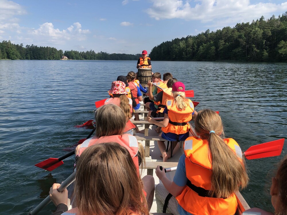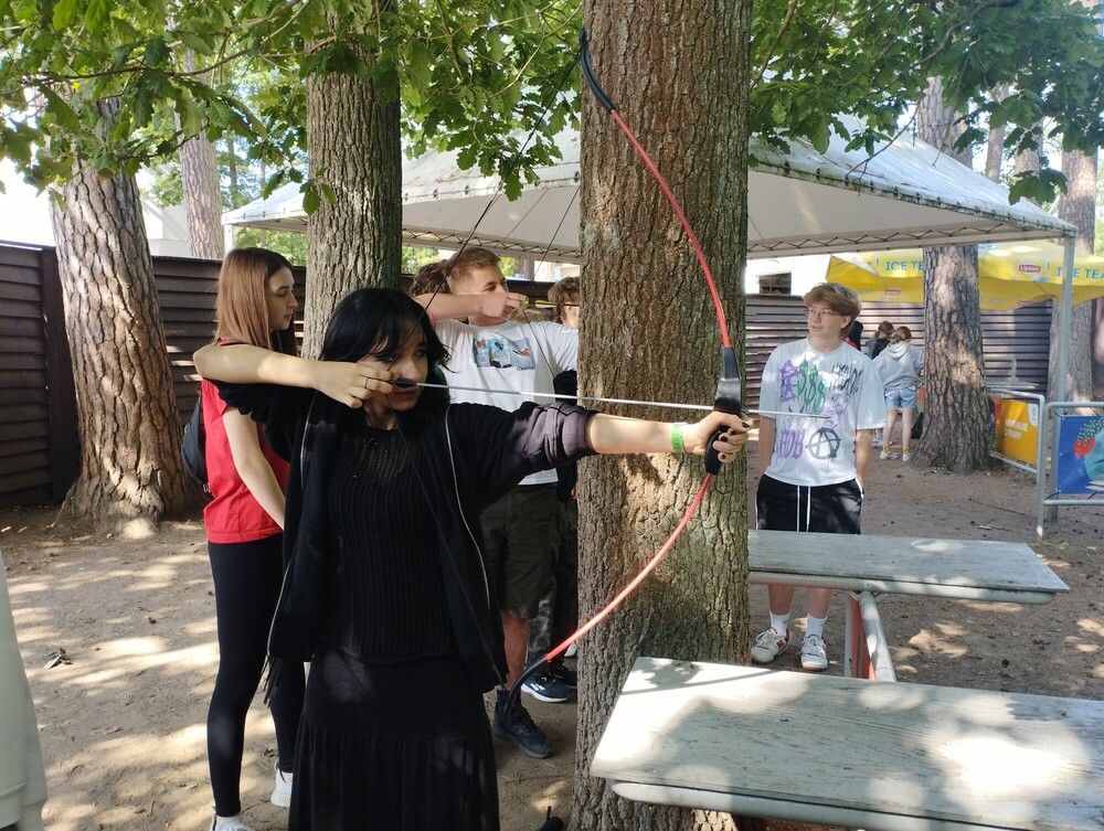 Dzień zaczęliśmy od niesamowitych atrakcji, jakimi była nauka jazdy na segwayu. Następnie poszliśmy na smocze łodzie, pływaliśmy po jeziorze z ratownikiem, a po południu przyszedł czas na naukę strzelania z łuku do tarcz i konkurs na największą liczbę trafnych strzałów. Braliśmy udział w Archery Challenge, podczas którego przeprowadziliśmy drużynową bitwę na bezpieczne strzały. Uczestniczyliśmy również w grze terenowej pod tytułem Mafia.