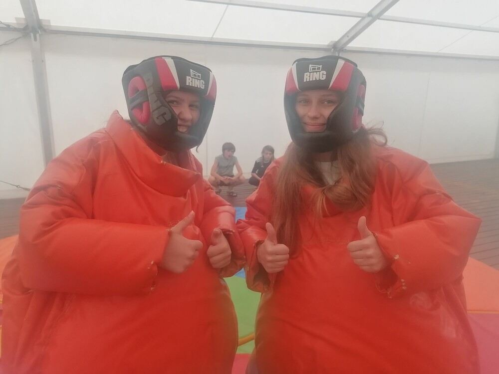 Drugi dzień rozpoczęliśmy zapasami sumo. Naszymi mistrzami zostali Franek i Ala! Potem udaliśmy się na oglądanie filmu przygodowego w kinie gwiezdnym. Wybawiliśmy się również na eurobungee i nauczyliśmy się strzelać z wiatrówek. Pełen wrażeń dzień zakończyliśmy grą terenową Mafia.