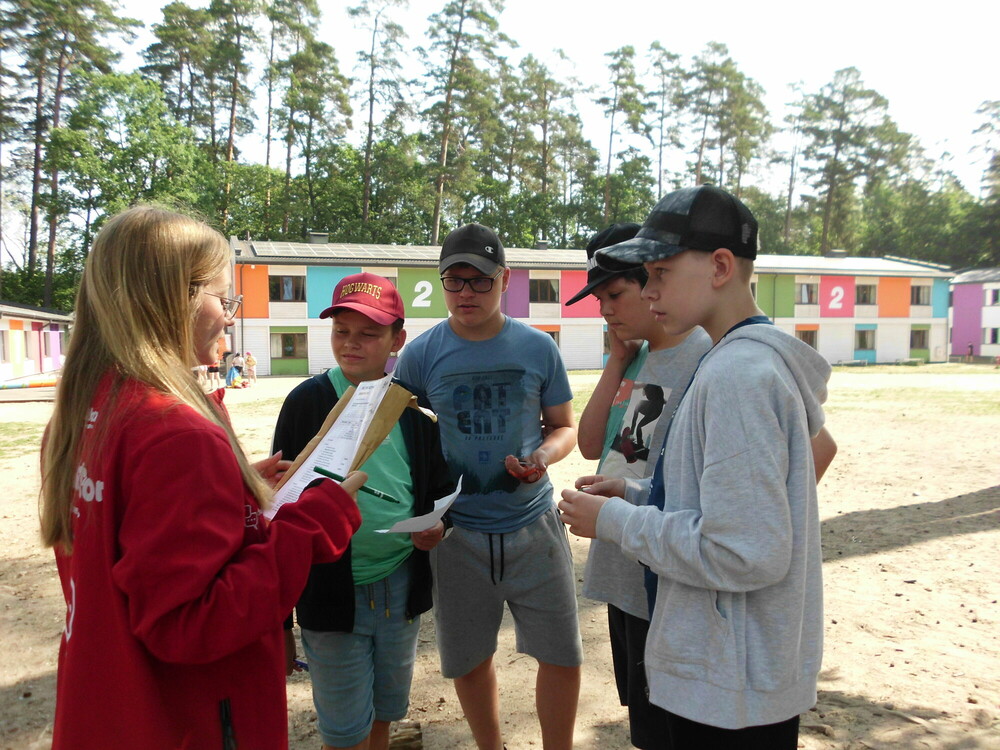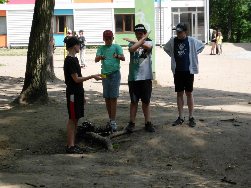 Kolejny dzień naszej wakacyjnej przygody zaczęliśmy pysznego śniadania. Naszymi pierwszymi zajęciami była gra Błędny Azymut, później mieliśmy zajęcia z łączności, na których się świetnie się bawiliśmy ucząc się alfabetu Morse’a. Gdy skończyliśmy się bawić, przyszedł czas na drugie śniadanie a zaraz po nim mieliśmy zajęcia z wychowawcą oraz czas na pływanie kajakami jednoosobowymi. Po szybkim przebraniu się poszliśmy na skrzynki, gdzie Alan zdobył najwięcej punktów. Ostatnią atrakcją dnia była gra terenowa Mafia, na której każdy z nas bawił się świetnie.