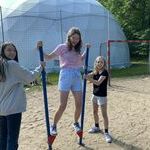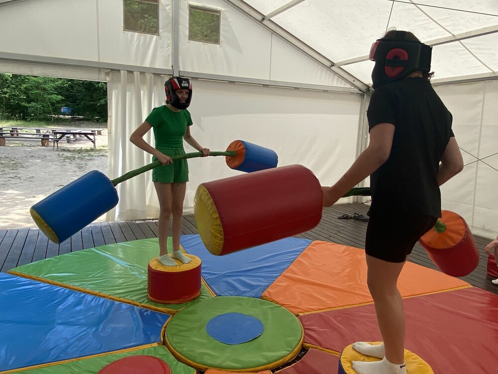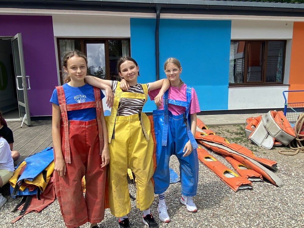 Dziś po śniadaniu udałyśmy się na zajęcia związane z cyrkiem. Uczyłyśmy się chodzić na szczudłach oraz jeździć na rowerze, jakiego dotychczas nigdy nie widziałyśmy. Było super! W południe poszłyśmy na ściankę wspinaczkową, na której tak świetnie się bawiliśmy, że chętnie byśmy to powtórzyły. Mało tego, później byłyśmy na kajakach. Po emocjonujących wrażeniach nadszedł czas na planszówki, po których udałyśmy się na wieczorne ognisko. Na długo zapamiętamy ten dzień.