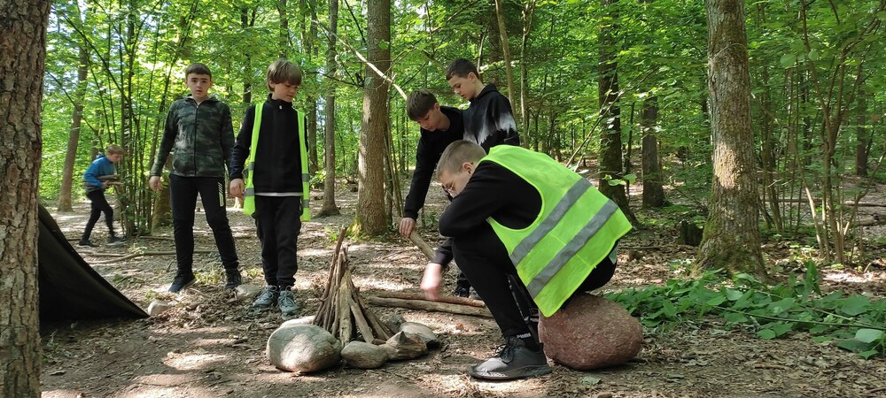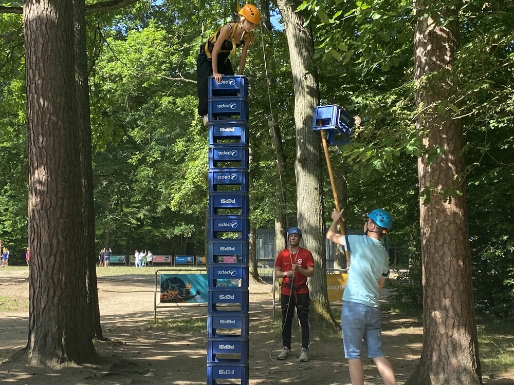 Za nami świetny dzień na Kulce. W ten piękny dzień próbowaliśmy dotknąć nieba za pomocą wieży ze skrzynek. Udało nam się dotrzeć naprawdę wysoko. Następnie udaliśmy się na park linowy. Chodziliśmy między wysokimi drzewami pokonując dwa poziomy trudności. Po obiedzie ruszyliśmy na wyprawę smoczą łodzią na malownicze jezioro Łęsk. Po rejsie udaliśmy się do lasu, aby poznać tajniki survivalu. Na zajęciach nauczyliśmy się budować prowizoryczne schronienia. Wieczór nauczył nas jak wyznaczać kierunki świata oraz wyznaczać azymuty. Dzień zakończyliśmy ogniskiem, na którym piekliśmy kiełbaski i bawiliśmy się w różne zabawy. To był dzień pełen wrażeń.