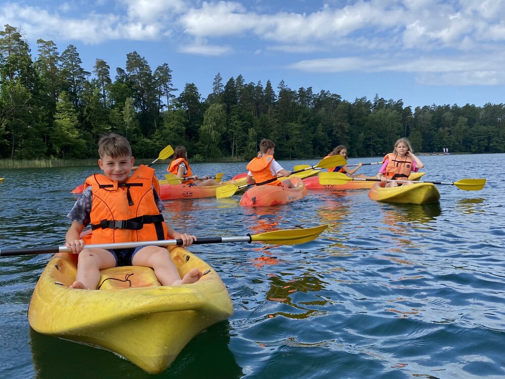 Pierwszy dzień zajęć programowych przywitał nas piękną, słoneczną pogodą. Z wielkim entuzjazmem wzięliśmy udział w aktywnych zajęciach na wodzie, na terenie ośrodka i poza nim, a wszystkie atrakcje dały naszym uczestnikom wiele ciekawych przygód. Na ich twarzach gościły przez cały dzień szerokie uśmiechy, co widać na naszych zdjęciach. Na kolonistów czeka więcej atrakcji, a to dopiero początek!