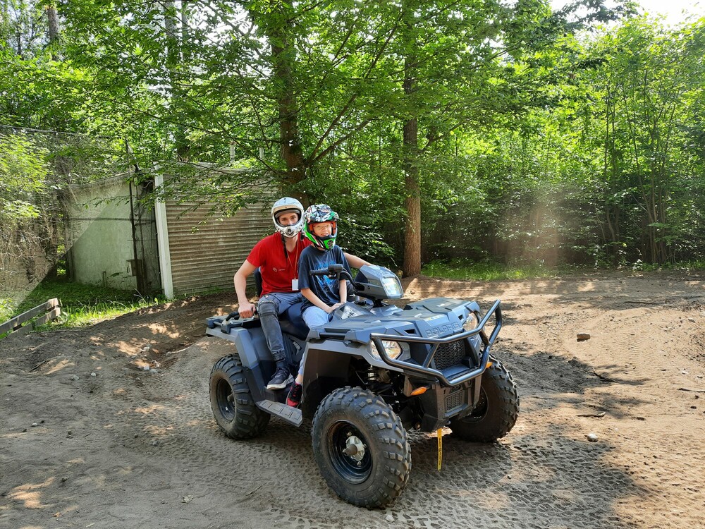 Świetnie wykorzystaliśmy całą niedzielę. Park linowy nie jest nam obcy. Wspinanie się po skrzynkach? Żaden problem. Świetnie sobie poradziliśmy. Czas spędzony na quadach pokazał nam, że zawodowi z nas kierowcy. Zabawy spędzone wspólnie dają niesamowite wspomnienia na przyszłe lata, a wieczór przyniósł nam seans filmowy w kinie sferycznym oraz ognisko z kiełbaskami.