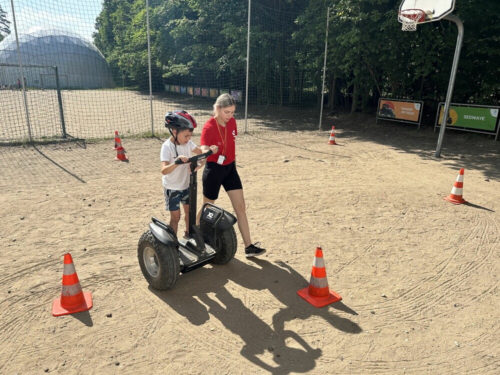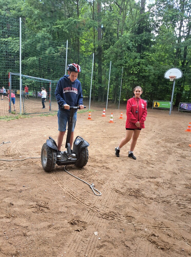 Dzień rozpoczęliśmy pokonując tor na dwuśladowym pojeździe elektrycznym zwanym segway, który spodobał się nam tak bardzo, że nie chcieliśmy tracić ani sekundy z tej fantastycznej atrakcji. Akcja Integracja spowodowała nasze szybkie zintegrowanie się i teraz czujemy się zwartą grupą, gotową na dalsze przygody. Uczestniczyliśmy w zajęciach Ale cyrk!, na których czekało na nas niewyobrażalnie dużo śmiechu, dokładnie tak jak w prawdziwym cyrku. Na końcu odbyło się ognisko, które z pewnością na długo zapamiętamy. To był po prostu super dzień!