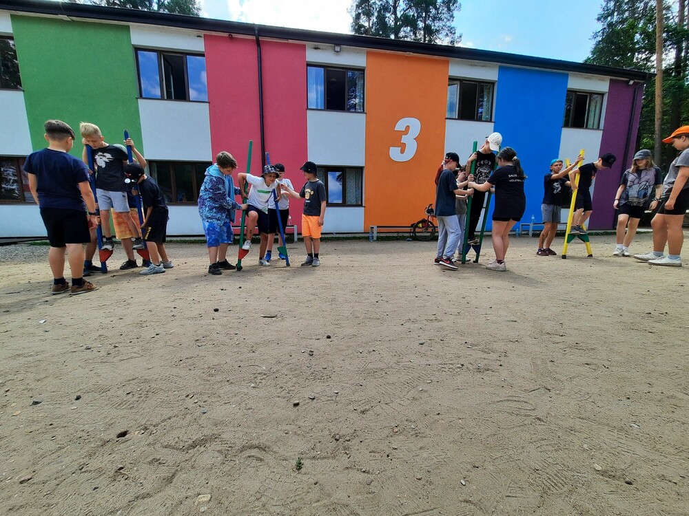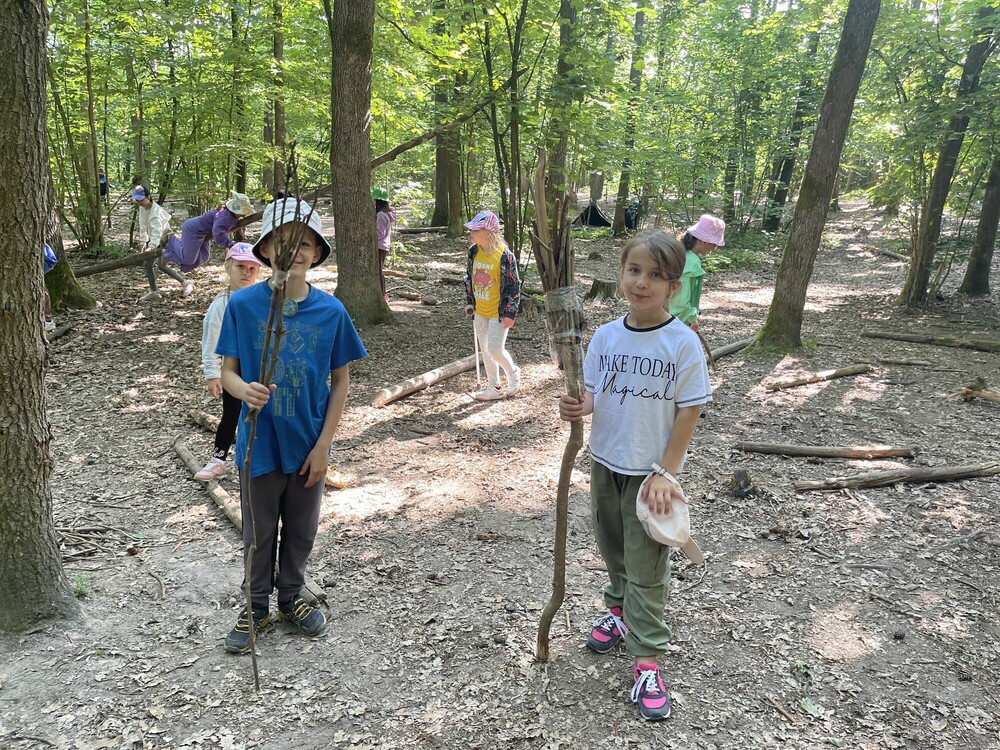 Dzień rozpoczęliśmy wycieczką do Zakazanego Lasu, żeby stworzyć nasze własne Nimbusy 2023, czyli latające miotły. Następnie rozpoczęliśmy magiczną zabawę w przekazywanie iskierki, wszystkie domy Hogwartu współpracowały, aby jako pierwsze złapać odznakę Krukonów. Później wraz z panią profesor poszliśmy na mega gry, gdzie układaliśmy wielką jengę, graliśmy w ogromne bierki oraz twistera. Było magicznie! Wieczorem mieliśmy magiczne ognisko z kiełbaskami i niesamowitymi grami integracyjnymi, którymi zakończyliśmy dzień.