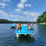 Ale to był piękny, pełny wrażeń i emocji dzień! Zaczęłyśmy go zabawami ruchowymi na zajęciach Akcja Integracja. Następnie grałyśmy w grę Awantura o Wiedzę. Czułyśmy się jak w prawdziwym teleturnieju! Najlepiej poradziły sobie dziewczyny z grupy zielonej i grupy różowej. Później czekały nas rowerki wodne, które dostarczyły nam niesamowitej frajdy.