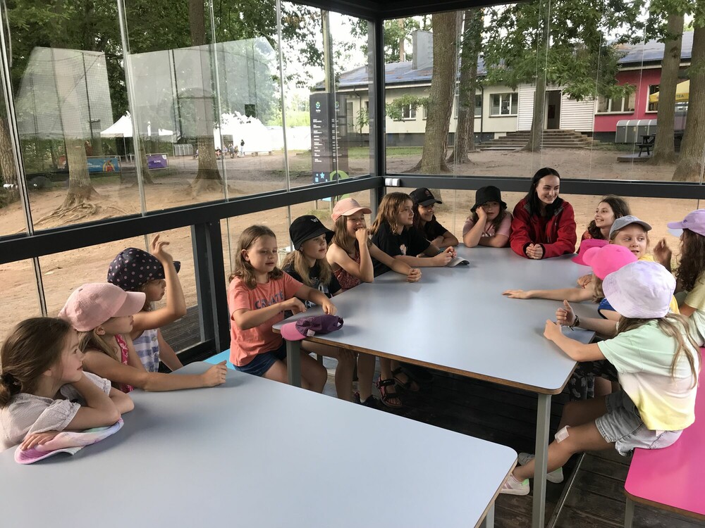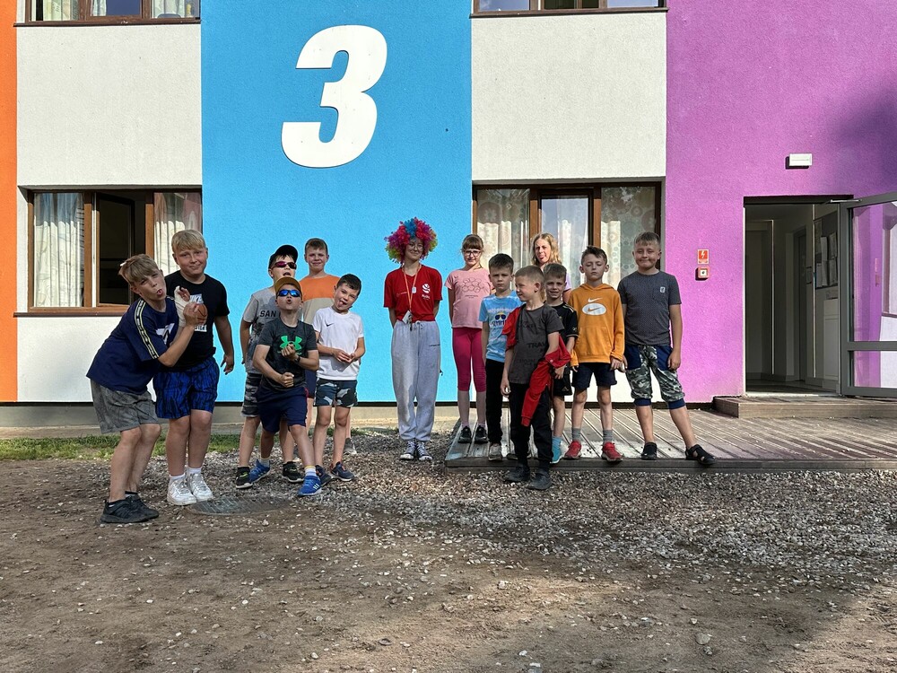 Dzisiaj po pysznym śniadaniu przeszliśmy na plażę, z której wyruszyliśmy na kajaki pod czujnym okiem pana ratownika. Zagraliśmy także w piłkę na opak w dużych kolorowych strojach, co stwarzało śmieszne sytuacje. Następnie spotkaliśmy się z oficerem tajności, który wprowadził nas do Strefy UFO, gdzie widzieliśmy statek kosmiczny i zahibernowanego kosmitę z dalekiej planety. Po obiedzie ruszyliśmy na ściankę wspinaczkową, którą wszyscy od razu pokochaliśmy, a wieczorem bawiliśmy się na wirtualnych dywanach.