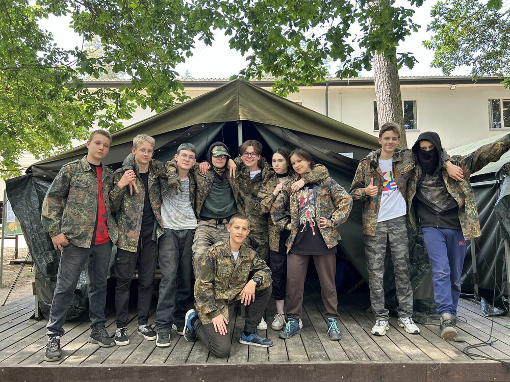 Zaraz po przebudzeniu wybraliśmy się na poranny rozruch, na którym rozgrzaliśmy się przed ciekawym i intensywnym dniem. Pełni sił i energii po śniadaniu ruszyliśmy na pierwsze zajęcia. Nauczyliśmy się podstawowych zasad związanych z bronią, a następnie spróbowaliśmy swoich sił w strzelaniu do celu na dynamicznej strzelnicy paintballowej. Po krótkiej przerwie mieliśmy okazję wraz z instruktorem przejechać się quadem po specjalnym torze. Na następnych zajęciach nauczyliśmy się sporo nowych rzeczy o pierwszej pomocy, po czym budowaliśmy nosze z rzeczy znalezionych w lesie. Po obiedzie zagraliśmy w grę Awantura o Wiedzę. Gra była zacięta, a wynik końcowy zaskakujący. Przed kolacją, korzystając z pogody, wyszliśmy na spacer do lasu. Po zjedzonej kolacji wybraliśmy się na bardzo ciekawy seans w kinie sferycznym. Dzień zakończyliśmy ogniskiem integracyjnym pełnym gier i zabaw. Nie możemy się doczekać kolejnych dni.