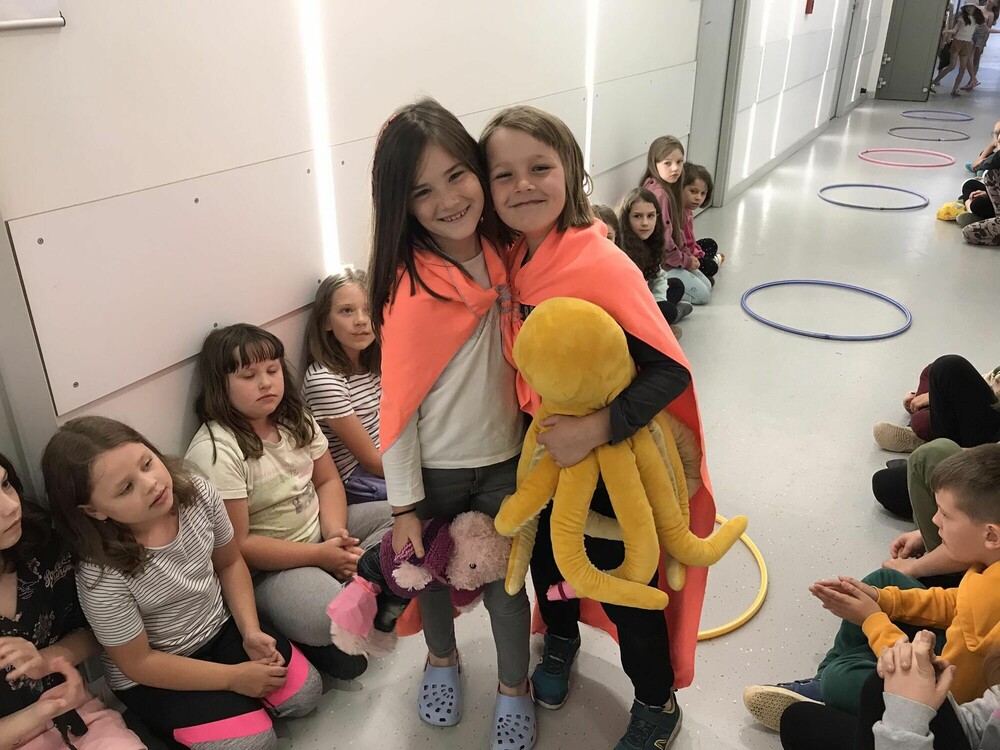 Dzień zaczęłyśmy od zabawy na wirtualnych dywanach. Na zajęciach z wychowawcą robiłyśmy laurki, integrowałyśmy się z koleżankami i kolegami z innej grupy i razem wzięłyśmy udział w Top Model. Kubuś Puchatek zaprosił nas na swoje urodziny. Dzień zakończyłyśmy seansem w kinie na ciekawym trójwymiarowym filmie. Cudownie spędziłyśmy ten dzień.