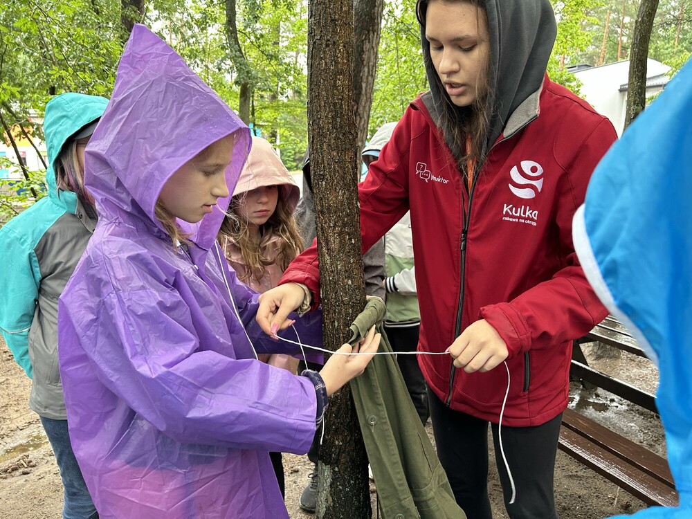W kolejnym dniu naszego pobytu, nie oglądają się na pogodę, udało nam się poznać podstawy survivalu i jego rodzaje. Czas poświęciliśmy na wspólną integrację. Następnie poszliśmy na kule wodne a potem nauczyliśmy się jak korzystać z kompasu, czym jest azymut i jakimi sposobami możemy określić kierunki geograficzne. Na wieczór zrobiliśmy własne przypinki i poznaliśmy technikę quillingu. Bawimy się na maksa!