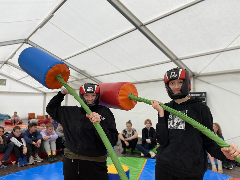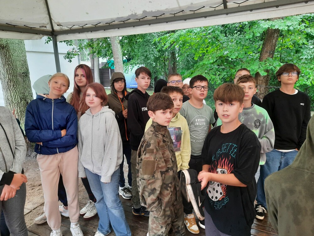 Dzisiejszy poranek spędziliśmy na graniu w gry planszowe oraz na zabawach integracyjnych, co sprawiło, że jeszcze bardziej zacisnęliśmy między sobą więzi. Następnie przed obiadem wybraliśmy się na walki gladiatorów. Wzięliśmy udział w turnieju i świetnie się przy tym bawiliśmy! Po obiedzie mieliśmy okazję skorzystać z żyroskopu. Było to niepowtarzalne wydarzenie. Na następnych zajęciach wyszliśmy do lasu poznać tajniki survivalu. Nauczyliśmy się do czego służy puszka survivalowa oraz jak zbudować szałas z wojskowej pałatki. Naszymi ostatnimi zajęciami tego dnia była gra terenowa w lesie. Rozwiązywaliśmy ciekawą zagadkę, szukając w lesie podpowiedzi. To był bardzo intensywny i ciekawy dzień!