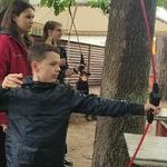 Poranek rozpoczęliśmy od integracyjnych zabaw oraz gier w grupie. Następnie mieliśmy okazję skorzystać z żyroskopu, gdzie bawiliśmy się super. Strzelanie z łuku połączone było z wysłuchaniem wielu ciekawych informacji na jego temat. Weszliśmy też do tajnej Strefy UFO, gdzie poznaliśmy ściśle poufne raporty. Na koniec dnia uczestniczyliśmy przy ognisku oraz piekliśmy kiełbaski.