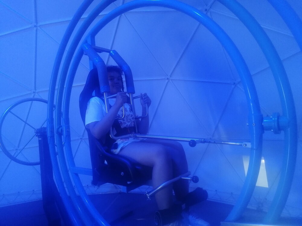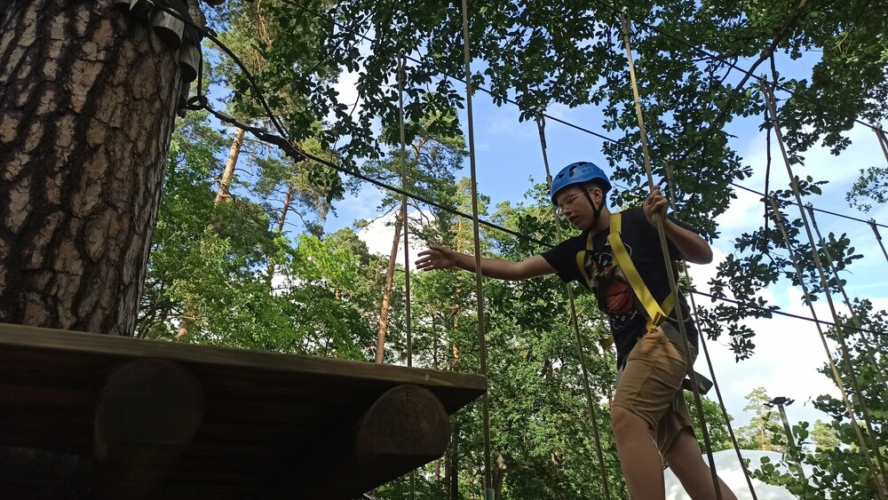 Dzisiaj bawiliśmy się równie wspaniale! Na kosmicznym żyroskopie kręciliśmy się tak mocno, że zapomnieliśmy o podobno padającym deszczu. Gra w czółko sprawiła, że śmialiśmy się jak szaleni jeszcze długo po zakończeniu zabawy. Laserowy paintball, na który czekaliśmy z niecierpliwością od początku kolonii, okazał się być jeszcze lepszy niż przypuszczaliśmy. Wszyscy przeszliśmy najwyższą trasę parku linowego, a na koniec dnia instruktor na zajęciach z kosmicznej musztry nauczył nas prawdziwej dyscypliny!