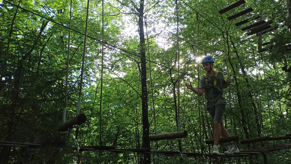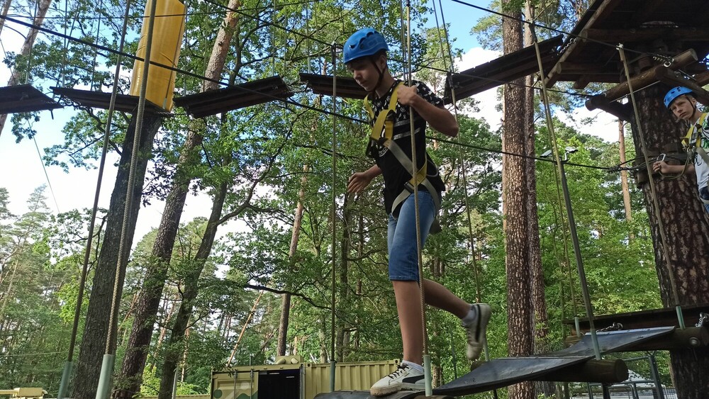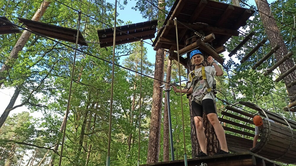 Pogoda nie stanęła nam na przeszkodzie w zrealizowaniu wielu atrakcji. Tuż przed obiadem ćwiczyliśmy logiczne myślenie za pomocą przeróżnych gier karcianych. Największą atrakcją tego dnia był park linowy, na którym każdemu udało się przejść wyznaczoną trasę. Dzień zakończyliśmy wspólnym meczem w siatkówkę z sąsiednią grupą, który zakończyliśmy wynikiem 2:1 dla naszej drużyny.