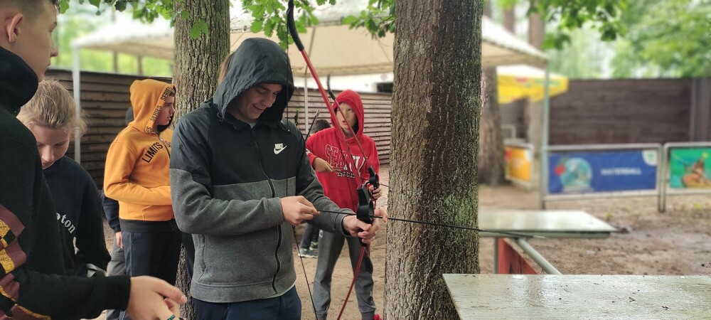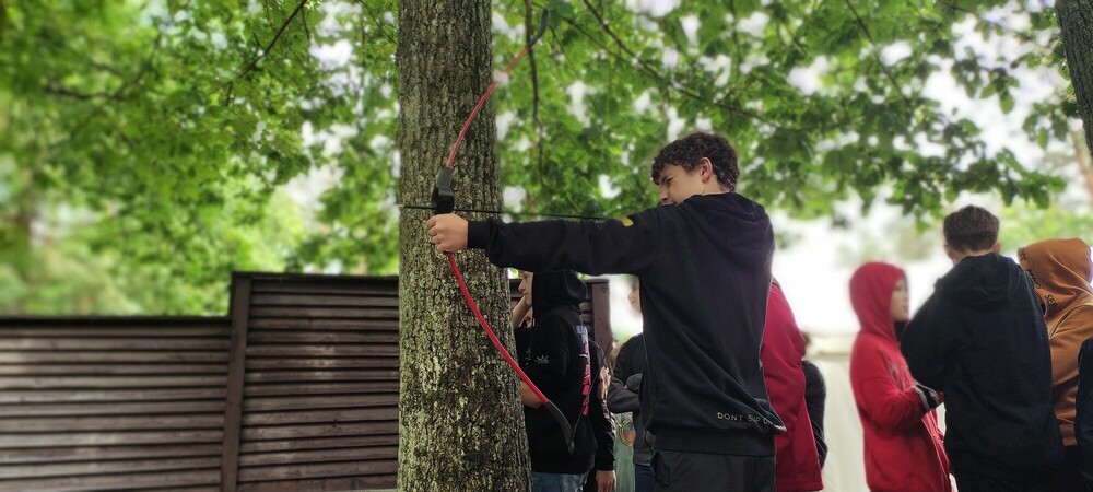 Dzień dostarczył nam wiele emocji. Na początku spędziliśmy miło czas grając w gry planszowe. Po obiedzie wyszło słońce, więc udaliśmy się na zajęcia strzelania z łuku. Instruktor zorganizował pojedynek, aby nas zmotywować do celności. Następnie stworzyliśmy flagę własnego obozu. Wykazaliśmy się dużą kreatywnością podczas tego zadania. Po kolacji czekało na nas ostatnie dzisiejsze zadanie, czyli gra terenowa Mafia.