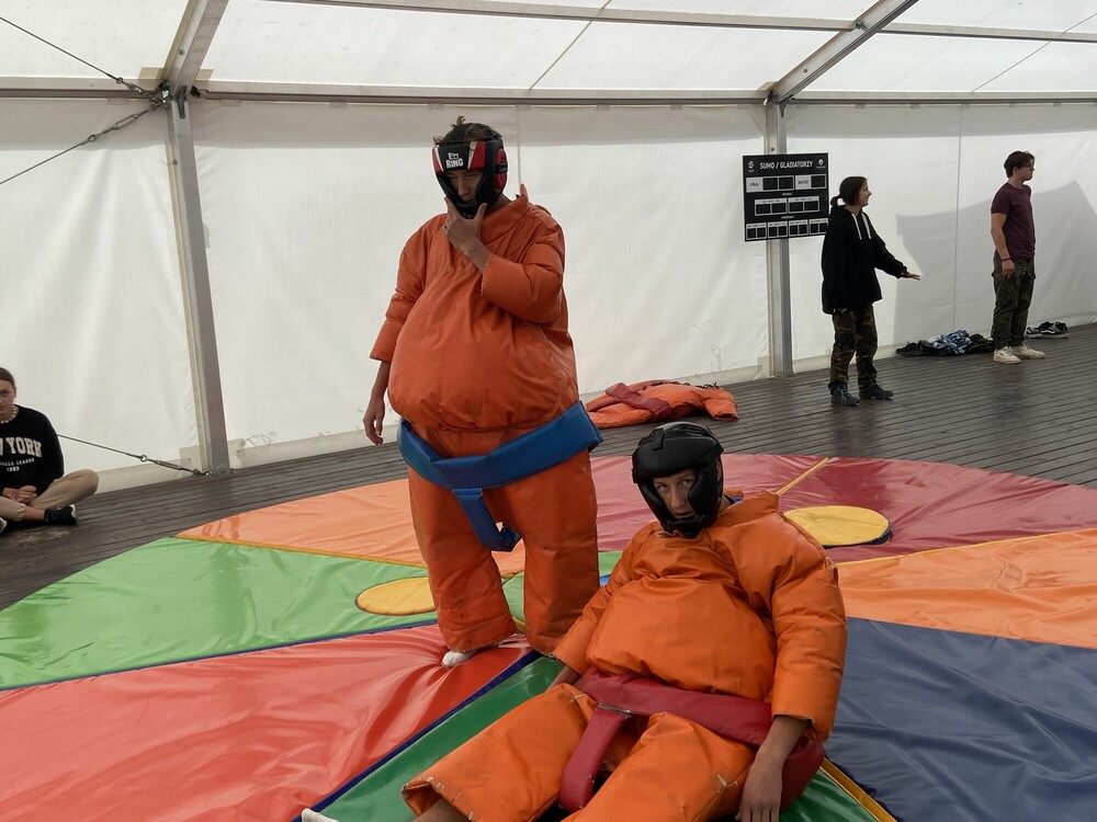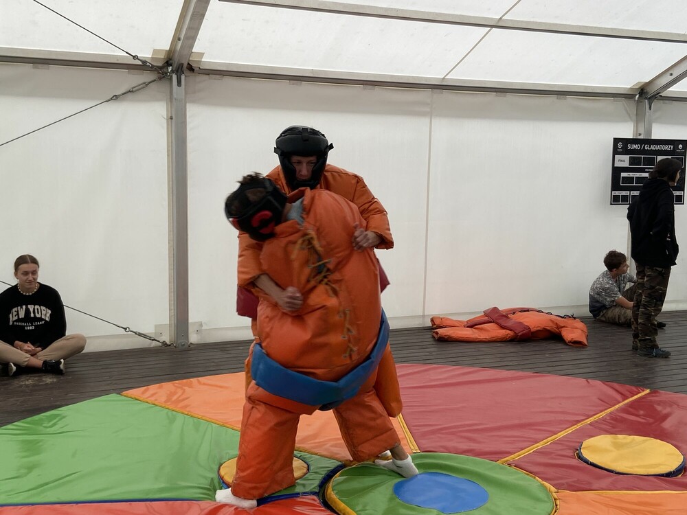 Czwartego dnia zaczęliśmy dzień od turnieju gier planszowych, co pochłonęło nas bez reszty. Kiedy pogoda się poprawiła, wzięliśmy udział w zapasach sumo, świetnie się przy tym bawiliśmy! Na koniec dnia czekała na nas gra terenowa Mafia w pobliskim lesie, która zakończyła dzisiejsze zajęcia. Nie możemy się doczekać następnego słonecznego dnia!