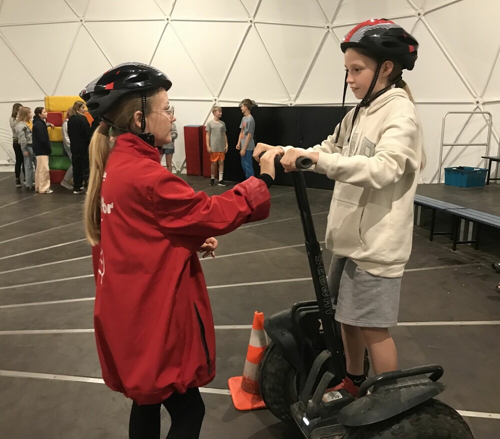 Dziś jeździliśmy segwayem po specjalnie przygotowanej trasie. Pani instruktorka asekurowała nas i świetnie sobie poradziliśmy. Nasz kolega z grupy, Franek, poprowadził karcianą grę mafia dla koleżanek i kolegów, a wieczorem odbyliśmy zupełnie inną grę terenową o tej samej nazwie. Było wiele pozytywnych emocji.