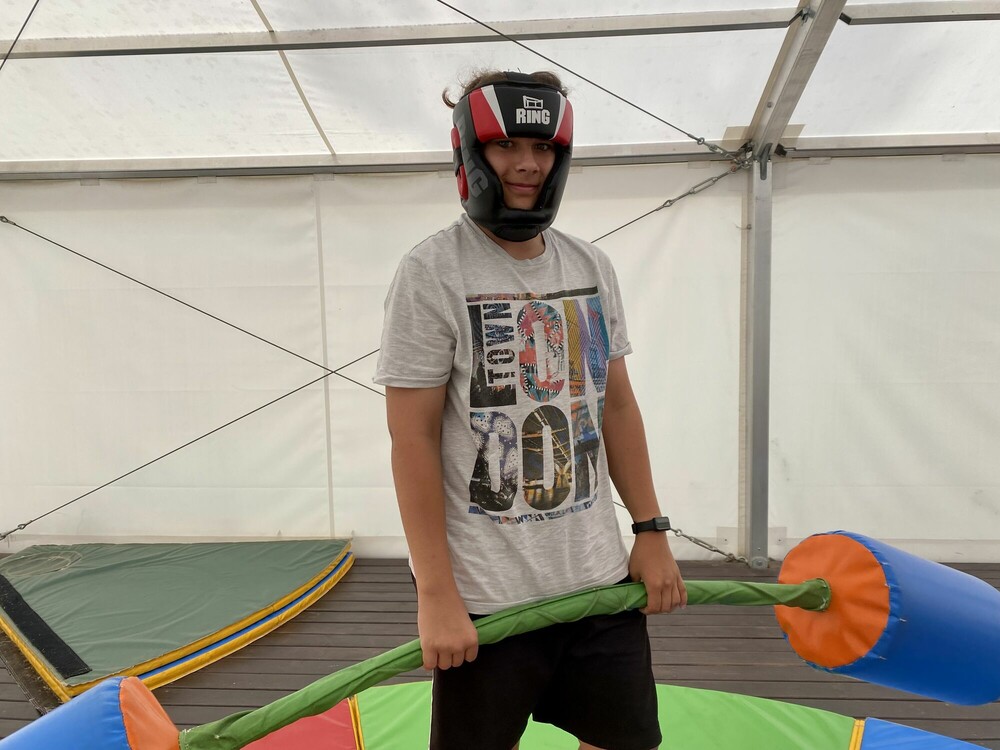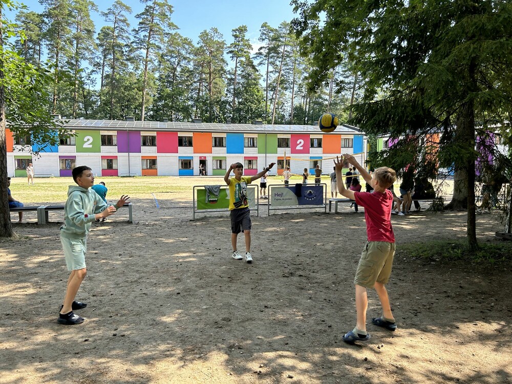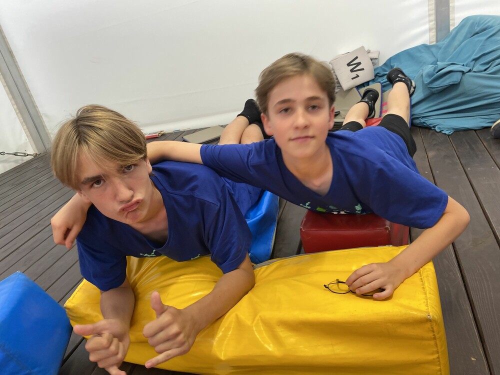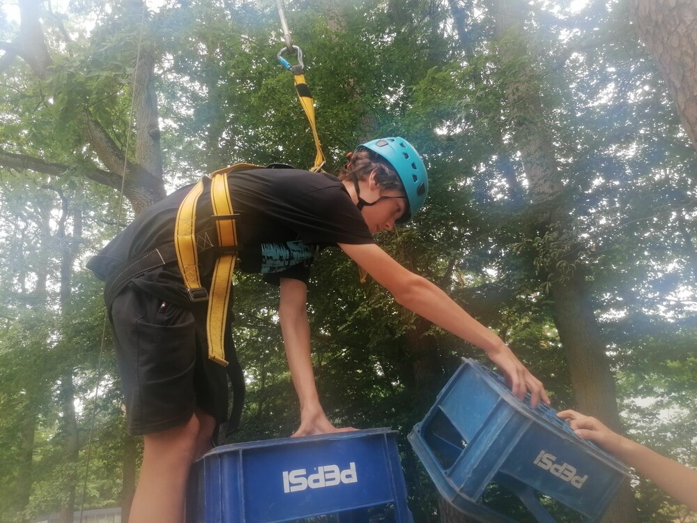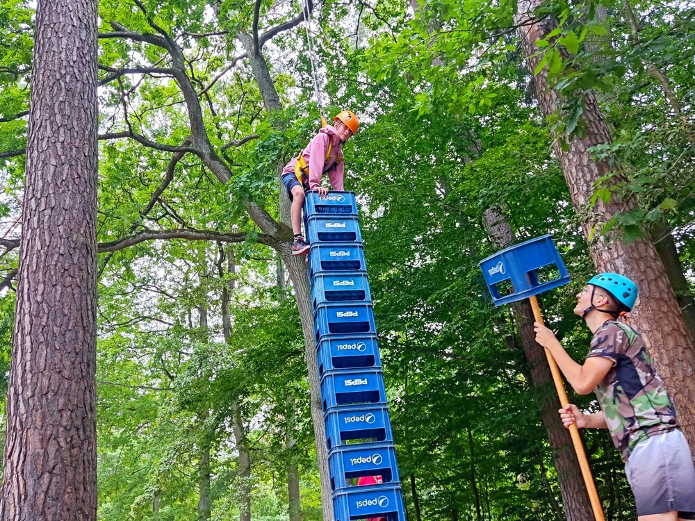 Nasz kolejny obozowy dzień zaczęliśmy od plażowania i pływania na kulkowej plaży, następnie graliśmy wspólnie w siatkówkę. Po południu mieliśmy zajęcia z budowania wieży z skrzynek, na które się wspinaliśmy. Przed kolacją mieliśmy walki sumo, a wieczorem spędziliśmy czas przy planszówkach. Wiemy, że jeszcze trochę przygód przed nami!