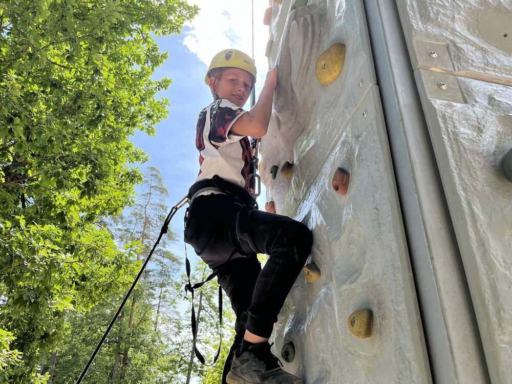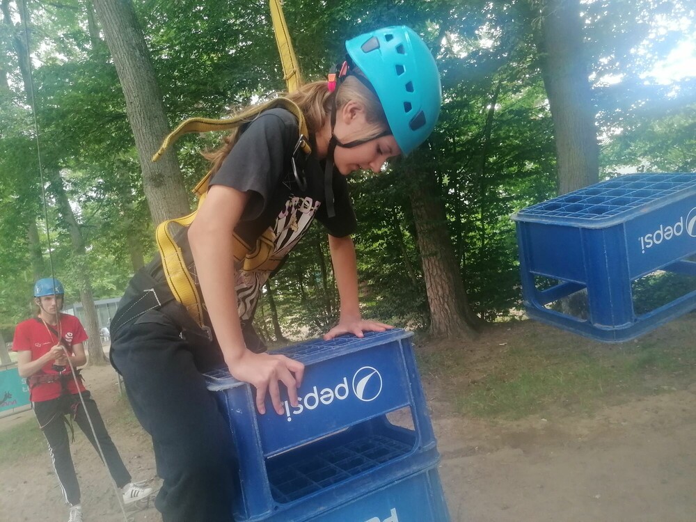 Kolejny dzień za nami! Poranek rozpoczęliśmy od gry w piłkę na opak. Są to dwie nietypowe gry – korfball i passball. Następnie udaliśmy się na ściankę wspinaczkową. Mieliśmy możliwość pokonania czterech tras o różnych poziomach trudności. Szło nam naprawdę świetnie. Przeszliśmy również trening astronauty na żyroskopie. Nasz piękny, słoneczny dzień zakończyliśmy występami na Talent Show.
