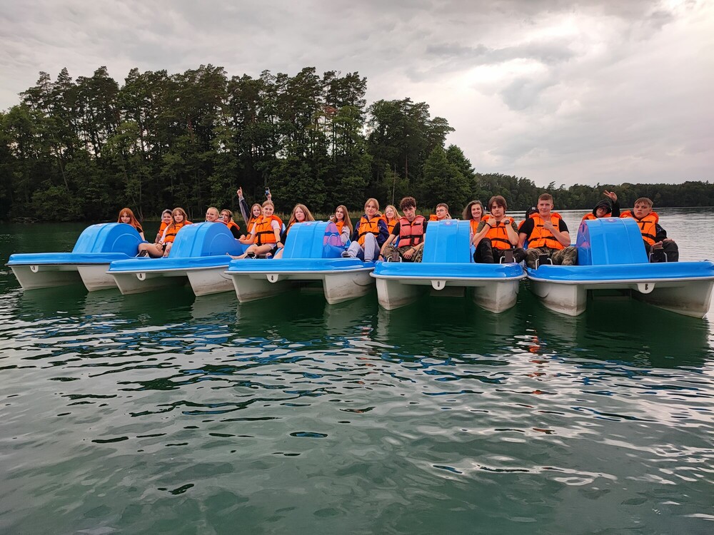 Dzień rozpoczęliśmy od wyprawy rowerkami wodnymi po naszym malowniczym jeziorze Łęsk. Zagraliśmy także w grę terenową Selfie Challenge, która polegała na wykonywaniu zadań i robieniu zdjęć. Następnie odbyły się zajęcia plastyczne, podczas których każdy z nas mógł zrobić dla siebie kolorową przypinkę oraz poznaliśmy technikę quilingu. Po obiedzie braliśmy udział w grach i zabawach sportowych. Natomiast wieczór spędziliśmy na grach integracyjnych, dzięki czemu poznaliśmy wielu nowych znajomych.