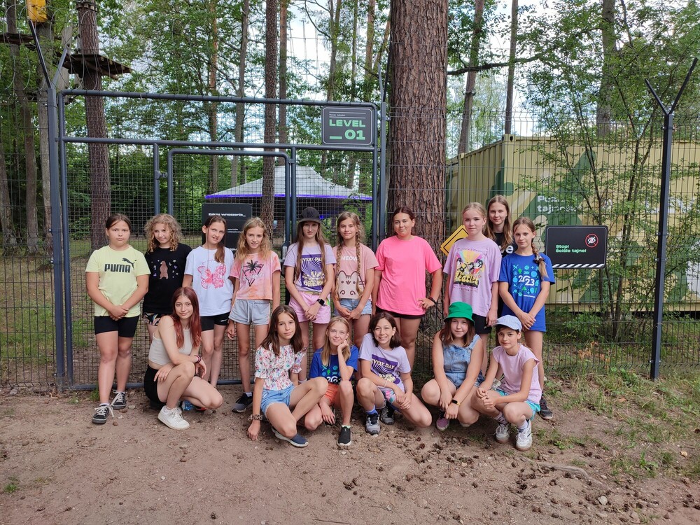 Dzisiaj wybraliśmy się na park linowy, na którym mogliśmy przejść wybrany poziom trudności. Nauczyliśmy się też podstawowych technik szyfrowania wiadomości i wykorzystaliśmy je podczas gry na ośrodku. Podziwialiśmy różne umiejętności uczestników kolonii podczas Talent Show oraz rozegraliśmy mecz siatkówki.
