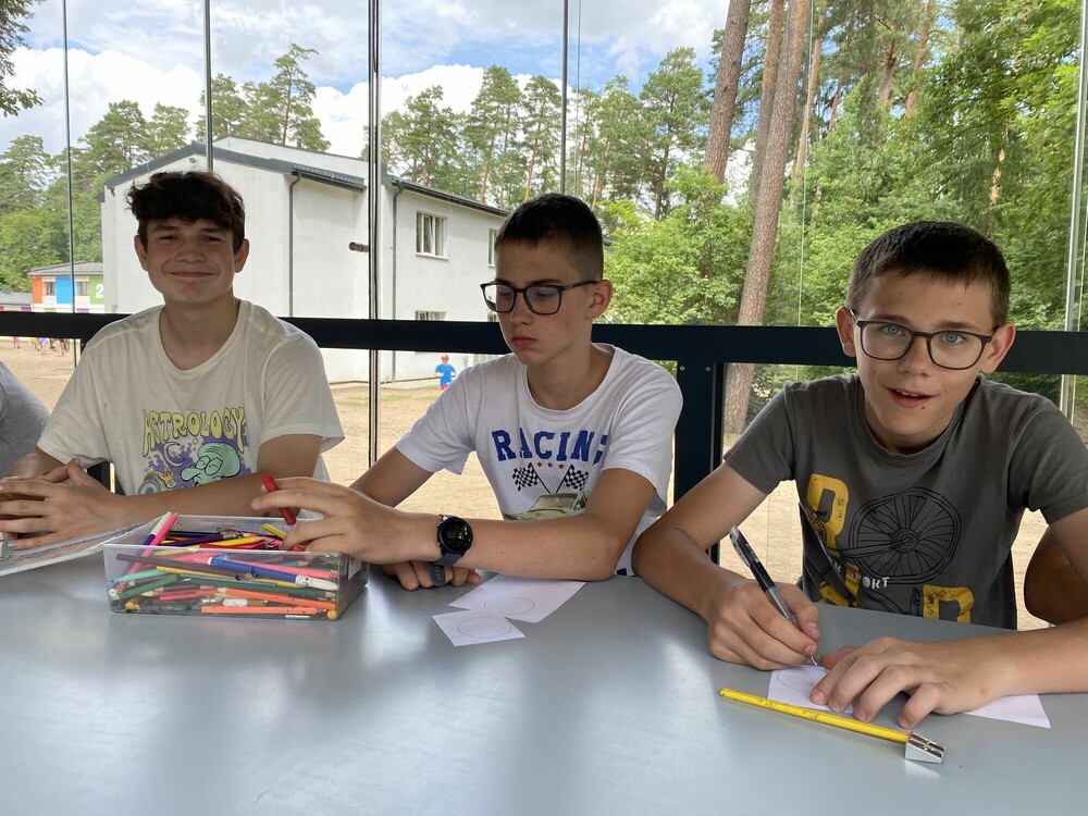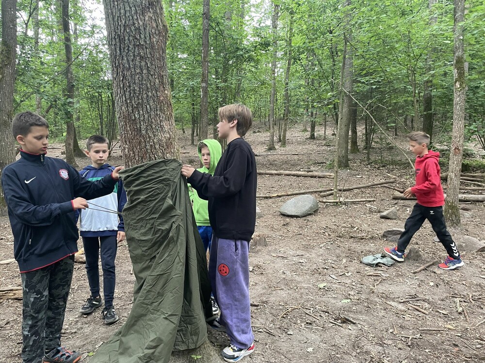 Dzisiaj obudziła nas piękna pogoda. Na samym początku dnia poszliśmy na waterball, gdzie próbowaliśmy utrzymać równowagę w kuli umieszczonej na wodzie. Następnie mieliśmy zajęcia łącznościowe, na których uczyliśmy się kodować różne wiadomości alfabetem Morse’a. Dowiedzieliśmy się również, jak działają telefony polowe. Przed obiadem udaliśmy się jeszcze na ściankę wspinaczkową, na której mieliśmy możliwość pokonywania czterech różnych tras. Później graliśmy w piłkę na opak, czyli nietypową grę w piłkę. Na koniec dnia graliśmy w mafię oraz w siatkówkę.