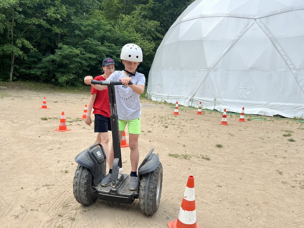 Jaki to był piękny dzień! Z samego rana poszliśmy nad jezioro, gdzie dużo pływaliśmy oraz opalaliśmy się na plaży. Następnie pokonywaliśmy tor na segwayu, czyli elektrycznym dwukołowym pojeździe. Po obiedzie wybraliśmy się do kina gwiezdnego, gdzie obejrzeliśmy przygodowo-edukacyjny film 3D o porach roku. Na koniec dnia udaliśmy się do Strefy UFO, gdzie przekroczyliśmy bramę tajnej bazy, weszliśmy do kokpitu spodka, zobaczyliśmy film o historii Kosmicznych Mazur, a w Laboratorium przetestowaliśmy urządzenia kosmitów. To był wspaniały dzień, z niecierpliwością czekamy na jutrzejszy!