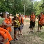 Poranek przywitał nas pięknym słońcem, które w towarzystwie wody, lasu i rówieśników gwarantuje znakomitą zabawę. Mieliśmy okazję brać udział w różnych wspólnych grach, sprawdzić się w strzelaniu, w walce gladiatorów, wspinaniu. Wypłynęliśmy na przepiękne jezioro Łęsk na kajakach, smoczych łodziach lub po prostu się w nim zanurzyliśmy podczas kąpieli. Wspaniałych emocji dostarczyły nam różne rozgrywki – baloniada, korfball i passball. To był bardzo udany poniedziałek!
