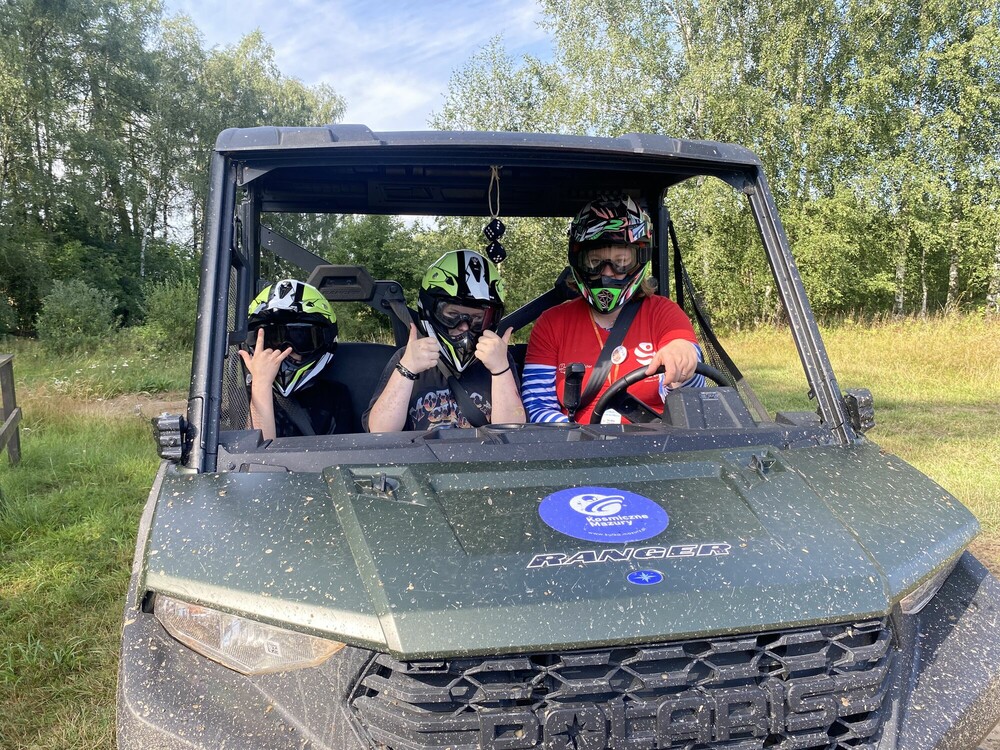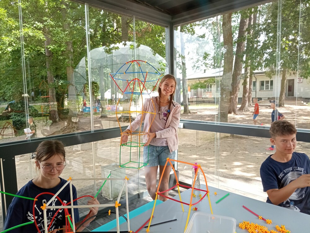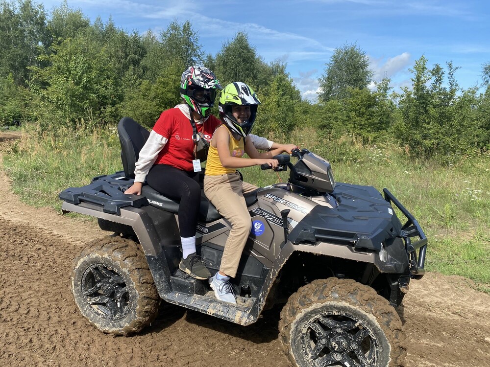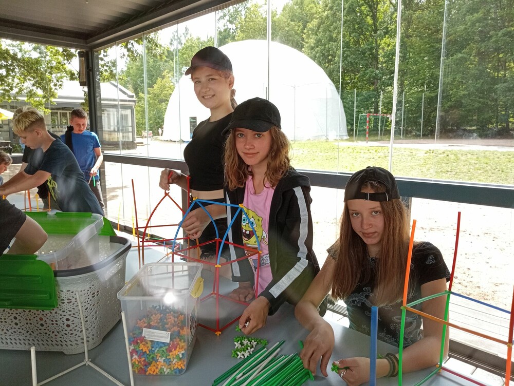 Kolejny fantastyczny dzień rozpoczęliśmy od zabaw w wirtualnym świecie gier na interaktywnych dywanach! Następnie skorzystaliśmy z ładnej pogody i spędziliśmy czas, odpoczywając na plaży i kąpiąc się w jeziorze. Tworzyliśmy również budowle z bambonady. Po obiedzie poznaliśmy budowę quadu i nabyliśmy podstawowe umiejętności, próbując swoich sił w jeździe tym pojazdem. Wzięliśmy również udział w grze terenowej, w której fotografowaliśmy wcześniej odszyfrowane hasła. Wieczorem przeszliśmy ćwiczenia astronauty na żyroskopie, dzięki którym mogliśmy poczuć wrażenia, jakie towarzyszą podczas startu rakiety kosmicznej!